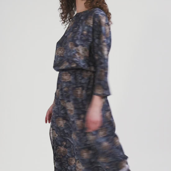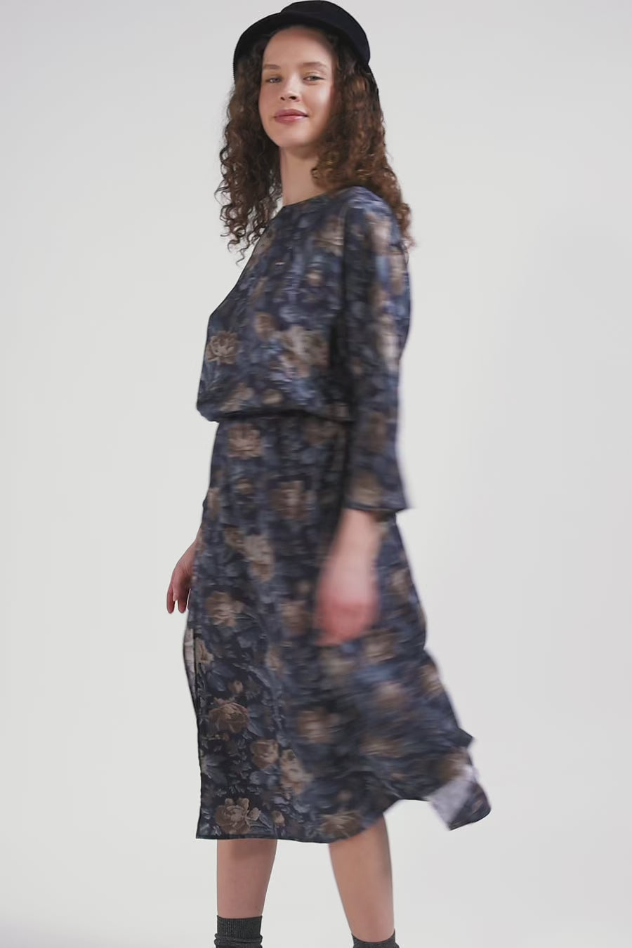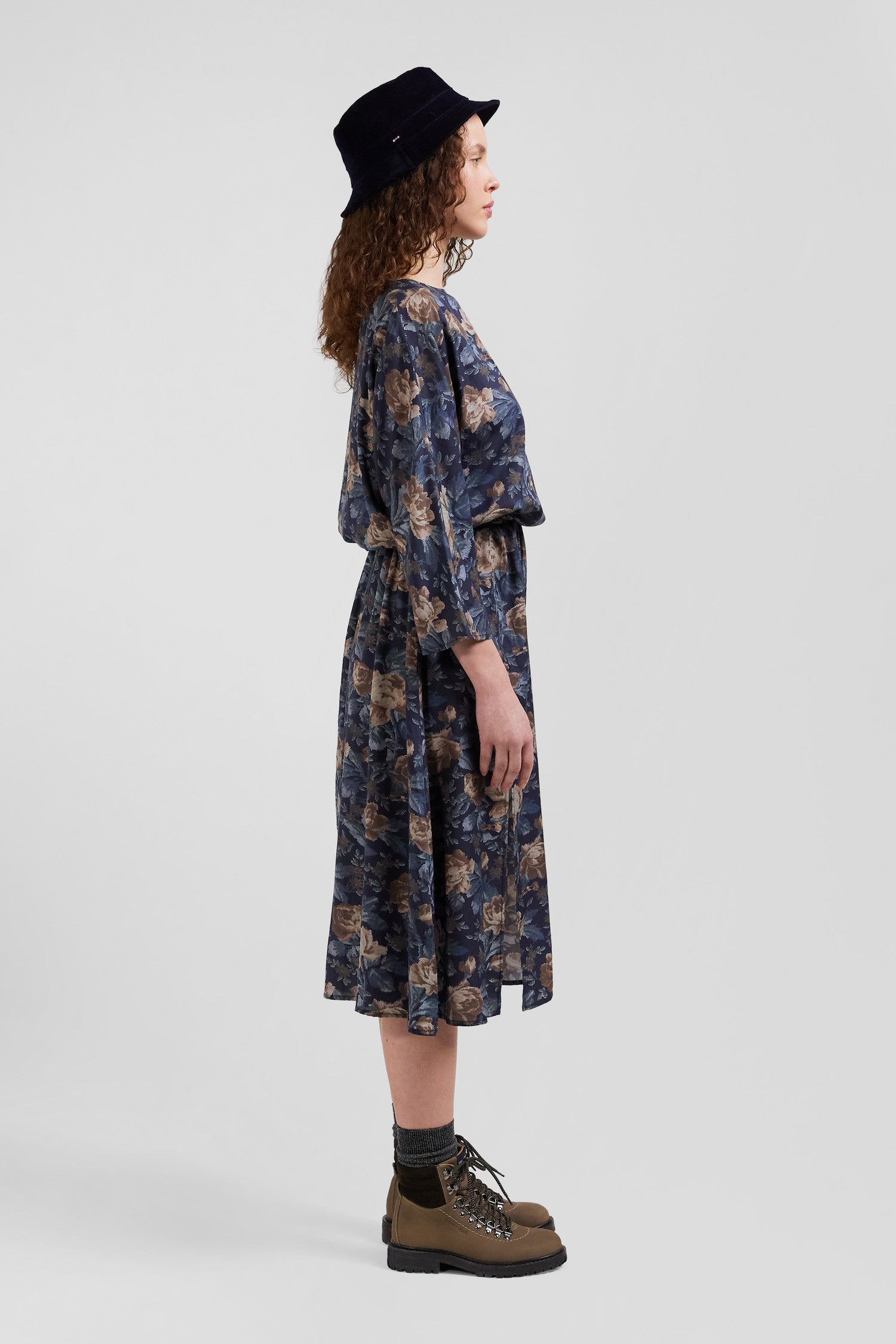 With 3/4-length sleeves, a round neckline that clears the head and an elegant drawstring waist, this dress enhances the feminine silhouette for any occasion. This blue dress features a wide, vintage-inspired floral print and a slit up the leg. With sandals or a pair of sneakers, this lyocell dress is a promise of comfort and elegance.