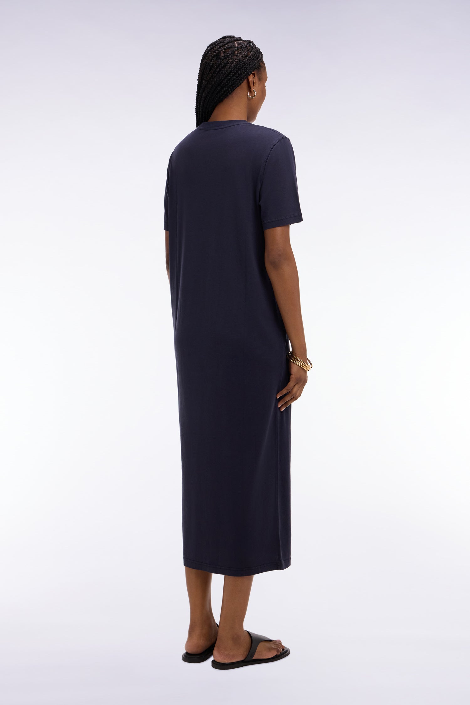 Cette robe T-shirt longue en lyocell et coton surteint associe fluidité, douceur et légèreté pour offrir un confort absolu tout au long de la journée. Sa coupe regular droite et son tombé naturel suffisent à parfaire un look d'été, associez-lui simplement une paire de sandales ou des baskets basses. Sa fente latérale facilite les mouvements et dynamise l’allure tout en soulignant la féminité de cet essentiel. Une pièce minimaliste et moderne, parfaite pour l’été comme pour la mi-saison. Cette robe T-shirt intemporelle est offerte en coloris classiques, beige, marine ou noir et en vert gazon, nuance star de cette saison.