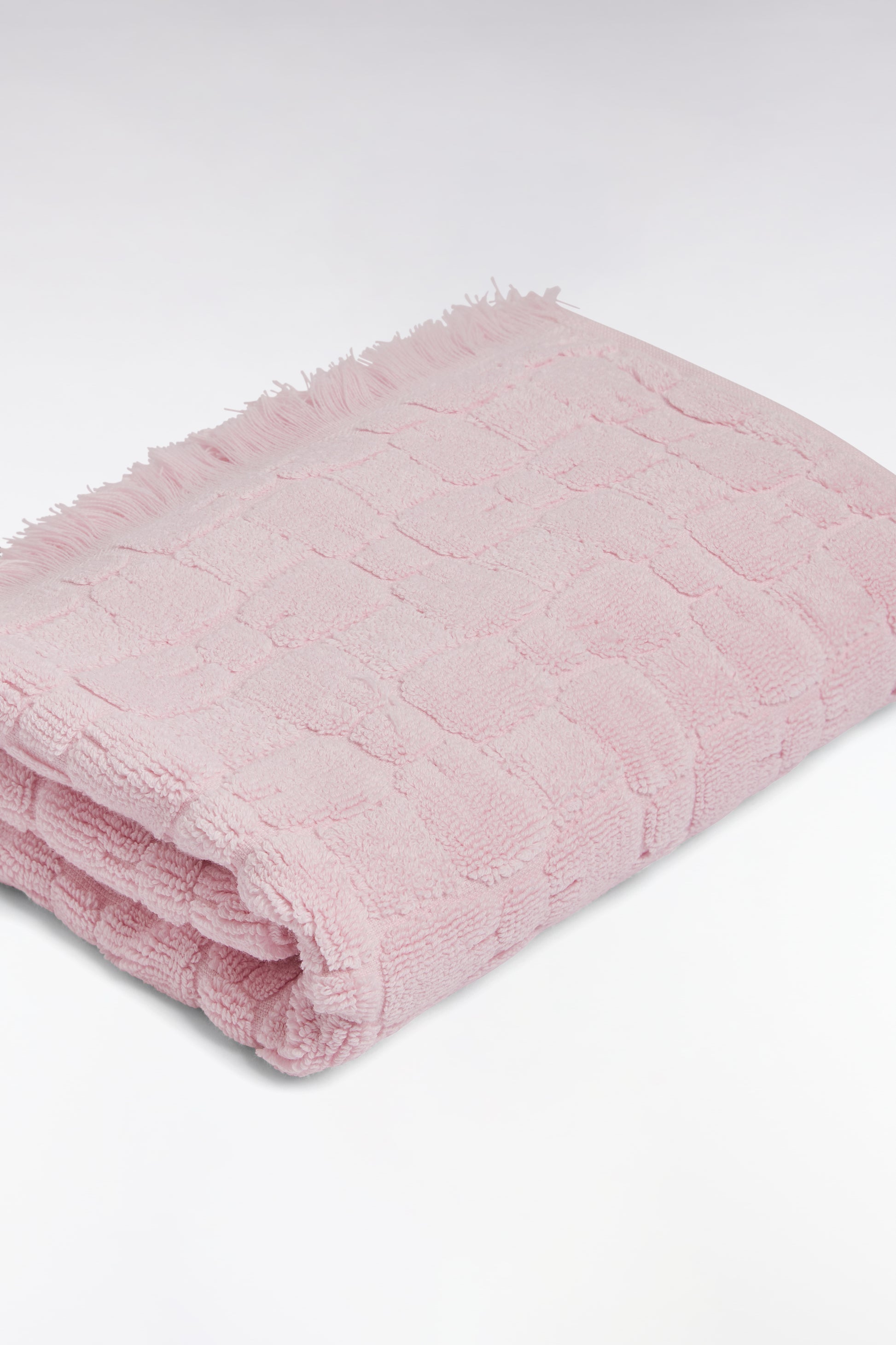 Déclinée dans un format pratique, cette serviette en coton éponge reprend les codes emblématiques de notre Maison. Son motif jacquard nœuds papillon et ses franges élégantes lui confèrent une allure soignée, idéale pour un usage quotidien. Disponible en blanc lumineux, rose doux ou marine profond, cette serviette de toilette s’intègre facilement à toutes les ambiances de salle de bain. Une pièce fonctionnelle et identitaire.