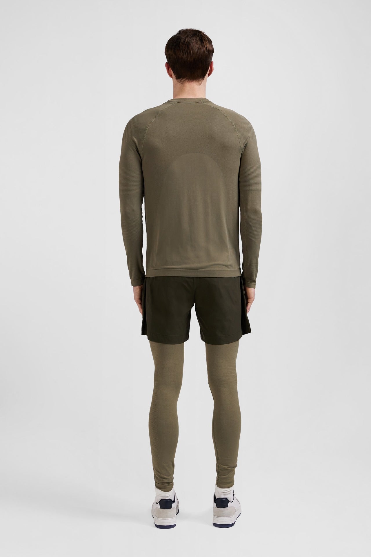 Khaki green long-sleeved sports T-shirt with striped details