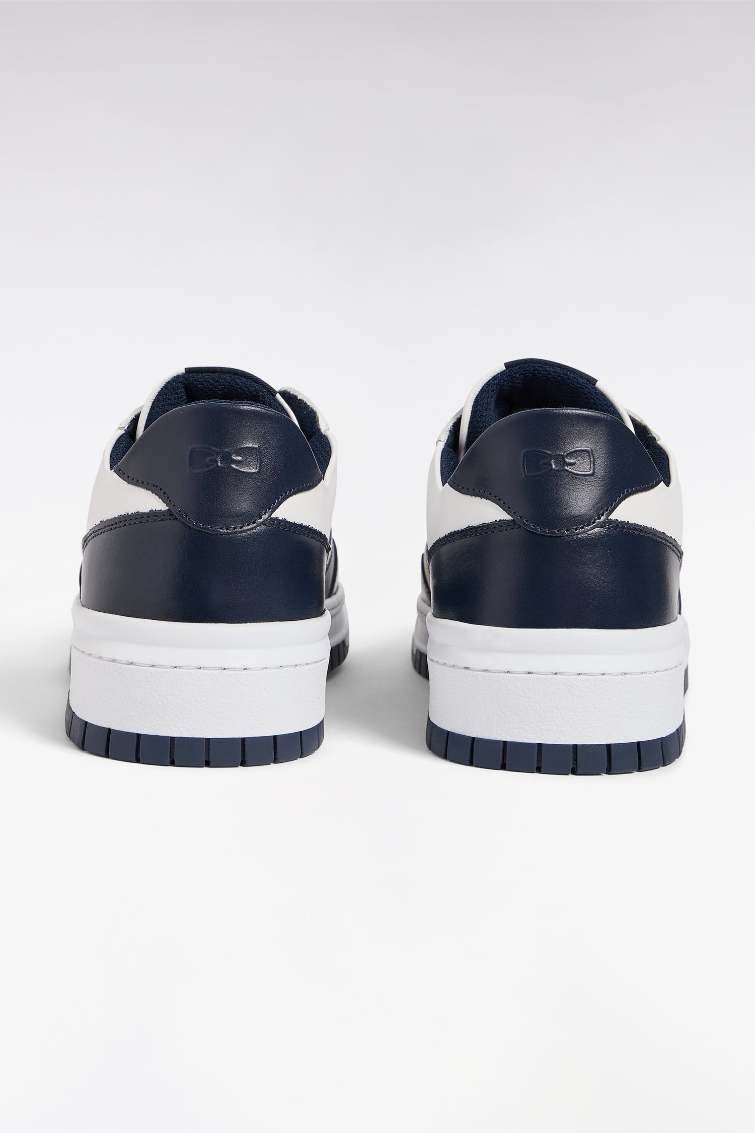 Combining comfort and urban allure, these two-tone navy and white leather sneakers embody the sport-chic style emblematic of our Maison. Perforated details and leather cut-outs, including a yoke featuring our iconic bow tie, add a touch of refinement to this model. With their meticulous construction and sturdy sole, these men's leather sneakers can be worn with jeans or jogging pants.