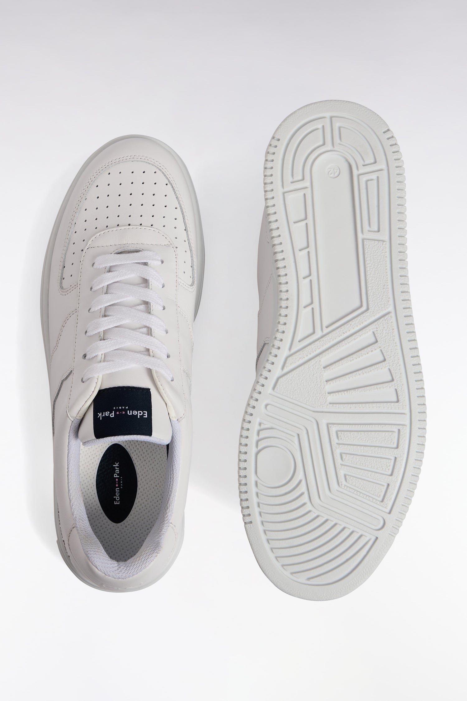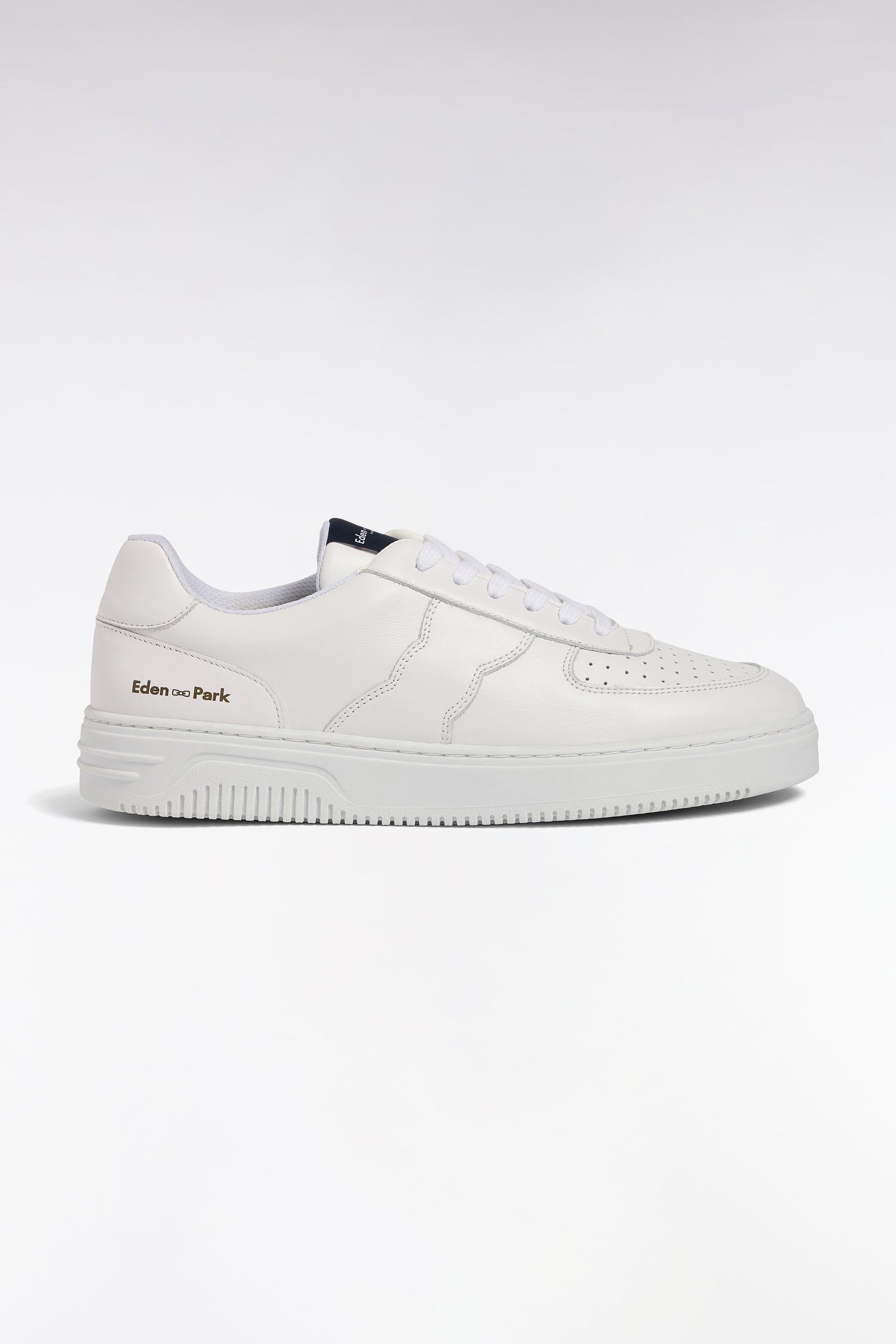 Crafted entirely in white leather for a sober, modern look, these low-top sneakers feature discreet yet meticulous finishing touches. The signature navy tongue and bowtie embossing at the back add an elegant signature, while the perforated camel insole guarantees optimal everyday comfort and breathability.