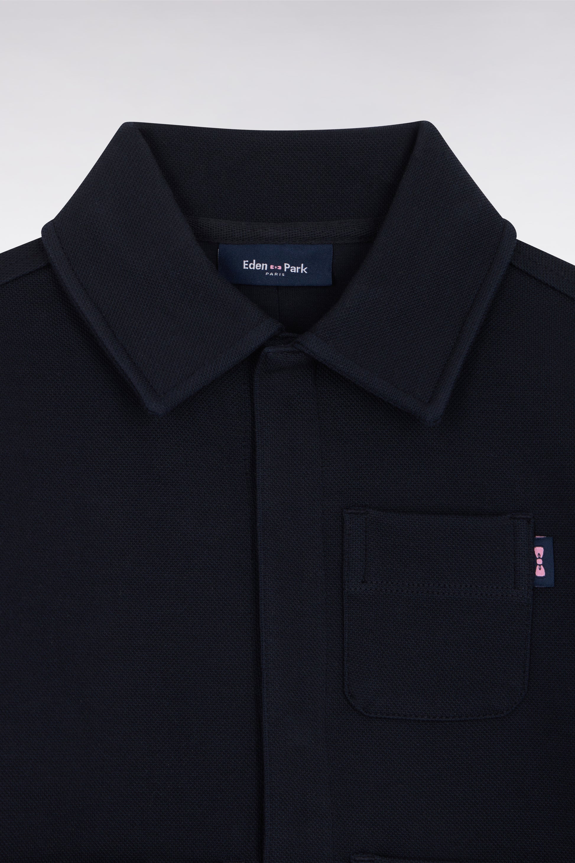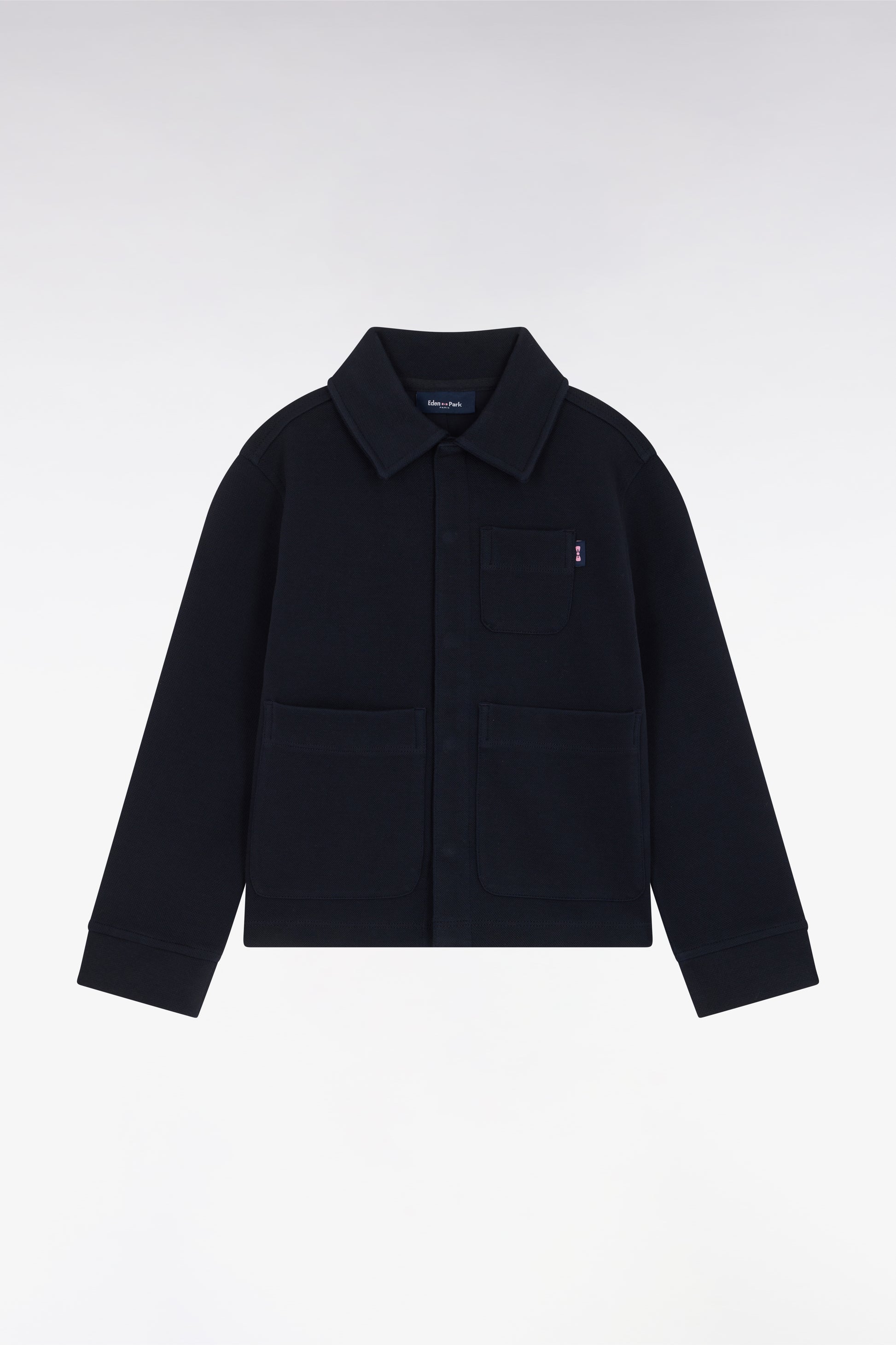 Cette surchemise pour enfant en interlock marine, douce et résistante, reprend les codes du vestiaire des grands dans une version pensée pour les plus jeunes. Ses trois poches plaquées, son col classique et sa bande chevron au dos lui donnent un style affirmé et contemporain, tout en restant confortable au quotidien. Une pièce mode idéale pour accompagner les enfants dans toutes leurs aventures avec le même chic que les adultes. À porter en surchemise sur un T-shirt de nos collections ou en guise de chemise grâce à ses boutons ovales inspirés des ballons de rugby qui ne manqueront pas de plaire à votre enfant.