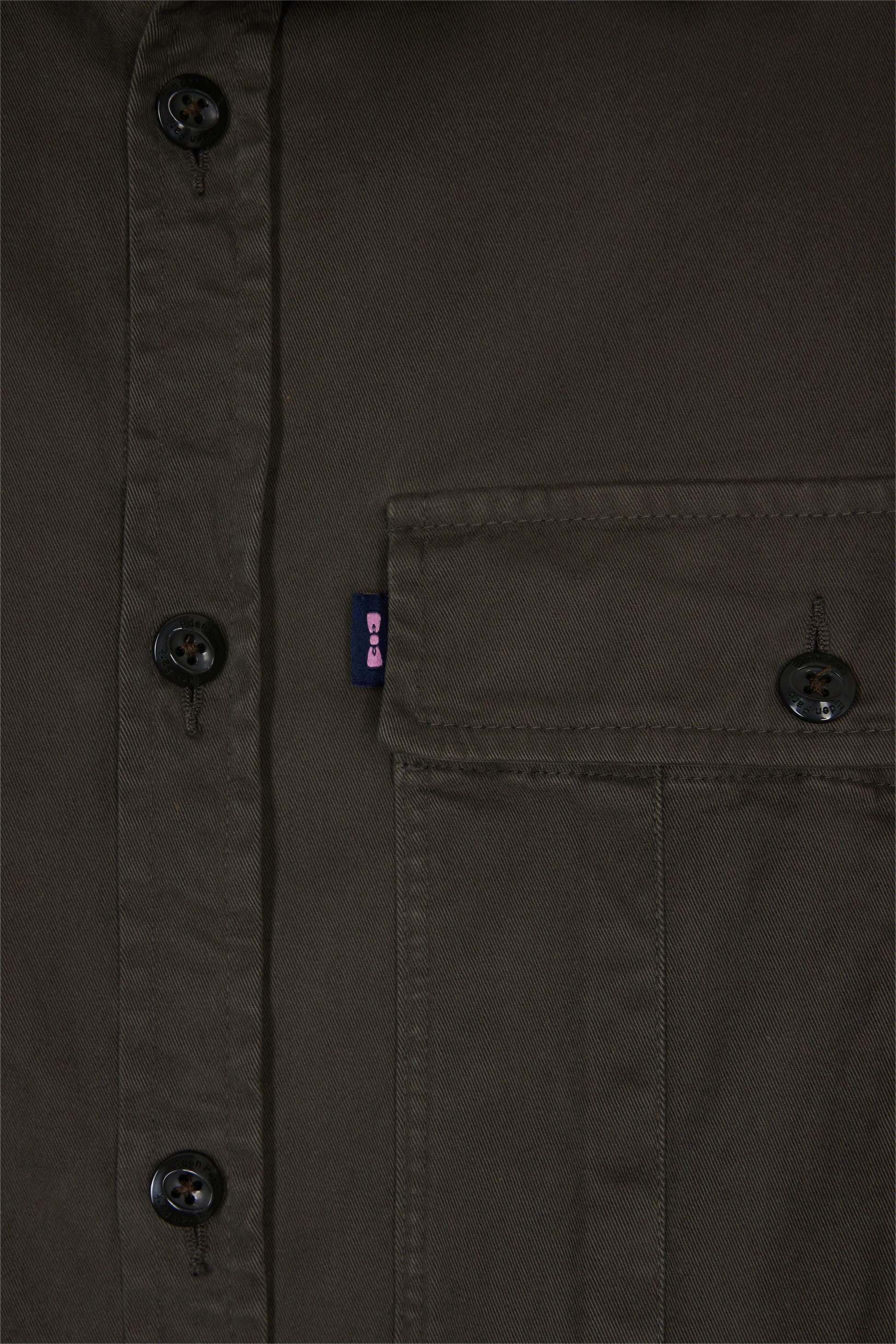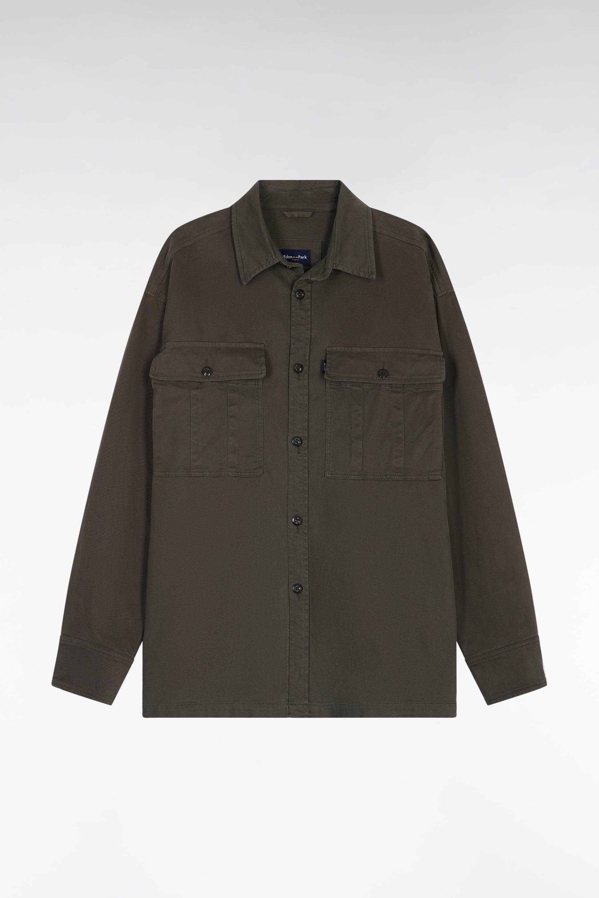 With its twill fabric and khaki hue, this stretch cotton overshirt takes its inspiration from the military wardrobe and turns it on its head. Unlined, it can be worn as a light jacket or a structured shirt, as you wish. Flap pockets with gussets, personalized buttons and branded elements reinforce its functional character. A sober, timeless, masculine piece to slip into any seasonal silhouette. A pure design, supported by excellent cuts and materials.