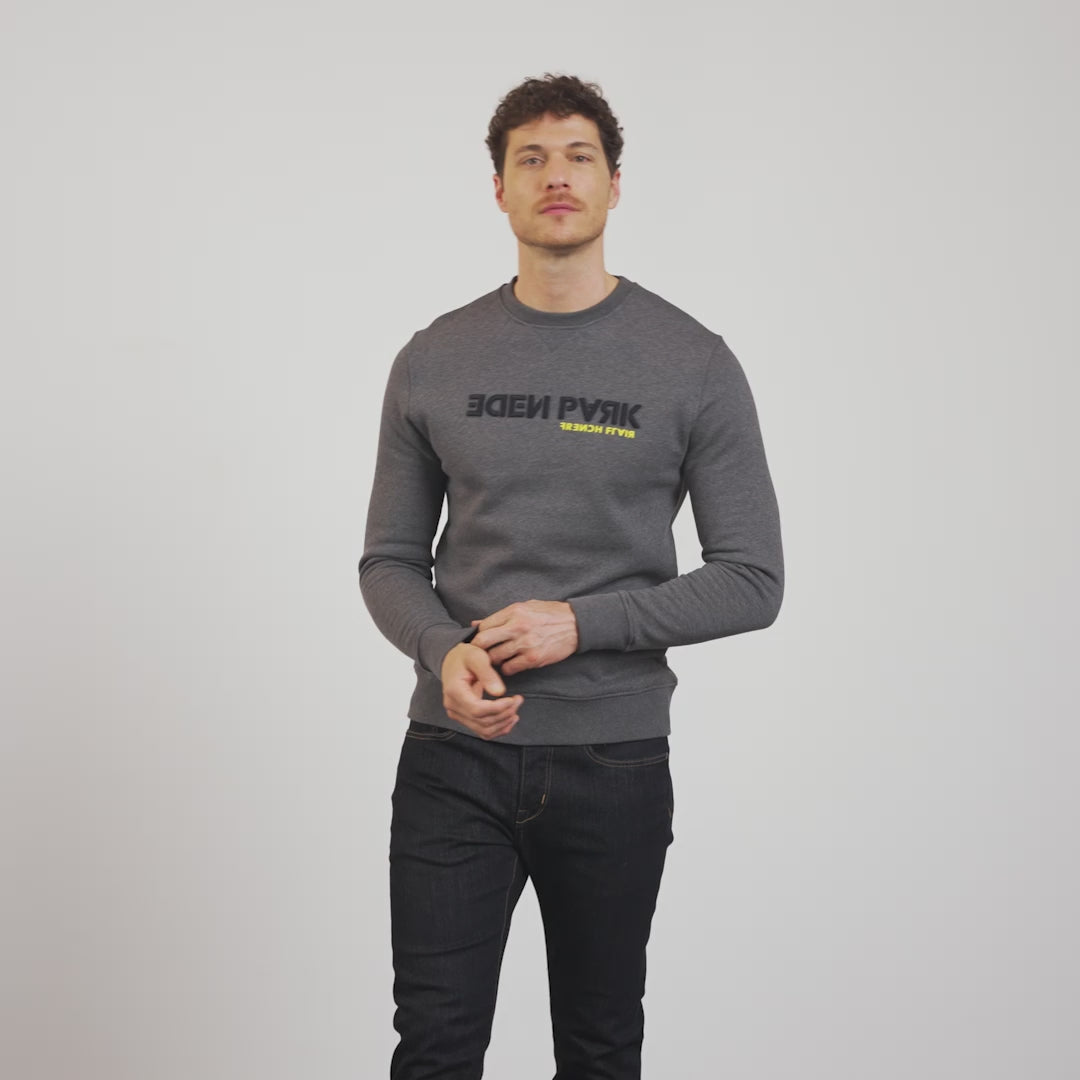 This round-neck sweatshirt features a graphic embroidered Eden Park label and a flocked French Flair label just below.