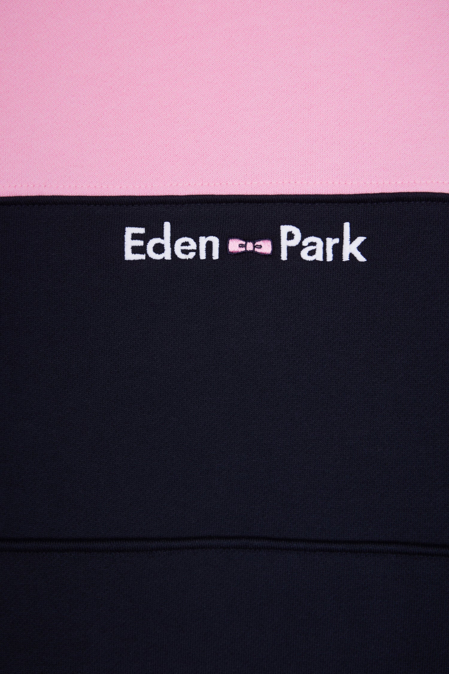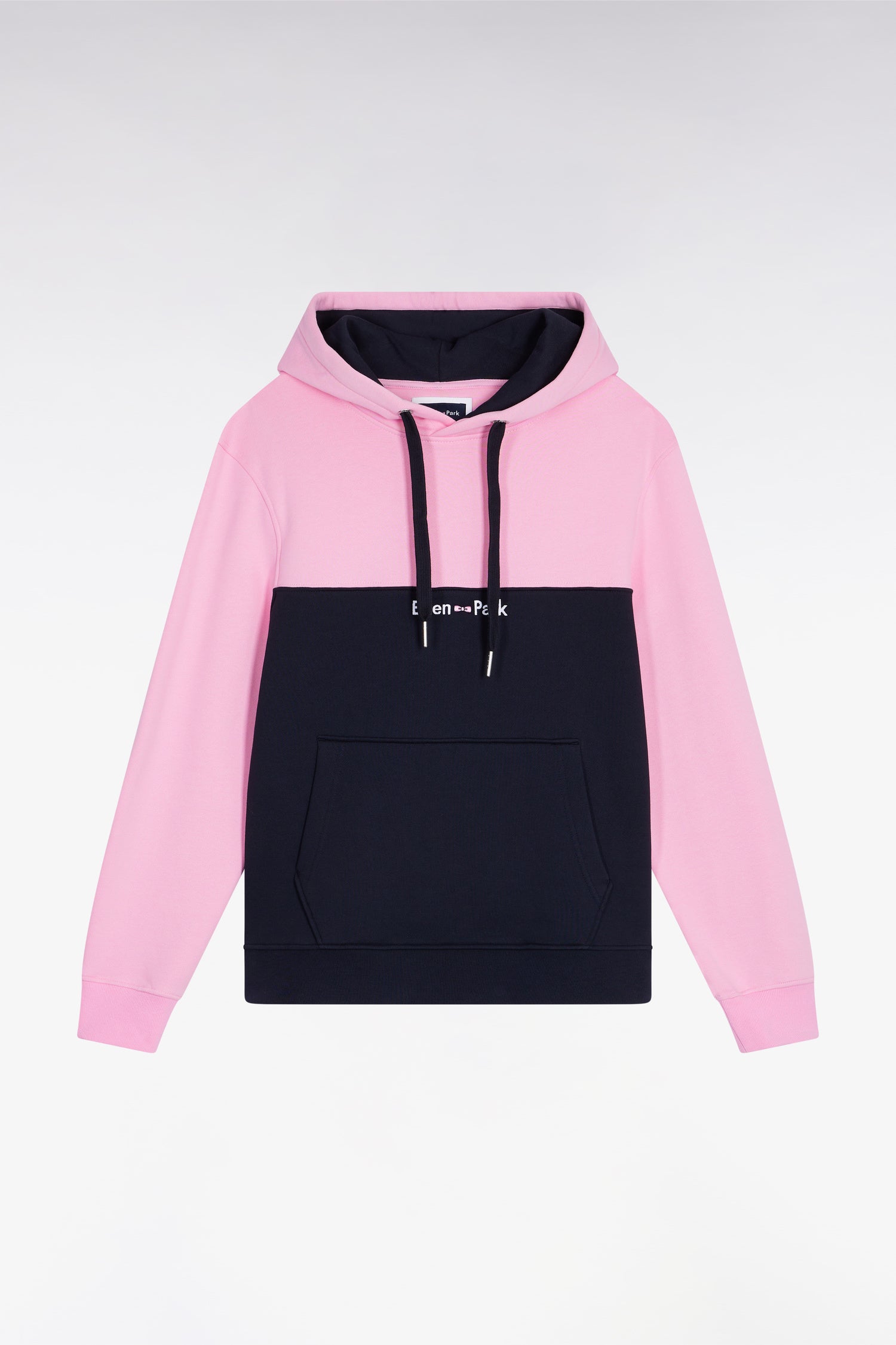 With its straight cut and soft brushed fleece, this two-tone sweatshirt in navy and pink, sky or white embodies the essence of our House's comfort. Eden Park embroidery on the front discreetly asserts its identity, while silver metal trim and ribbed cuffs and hem reinforce its polished look. A graphic patch on the inside of the hood and navy drawstrings for added elegance.