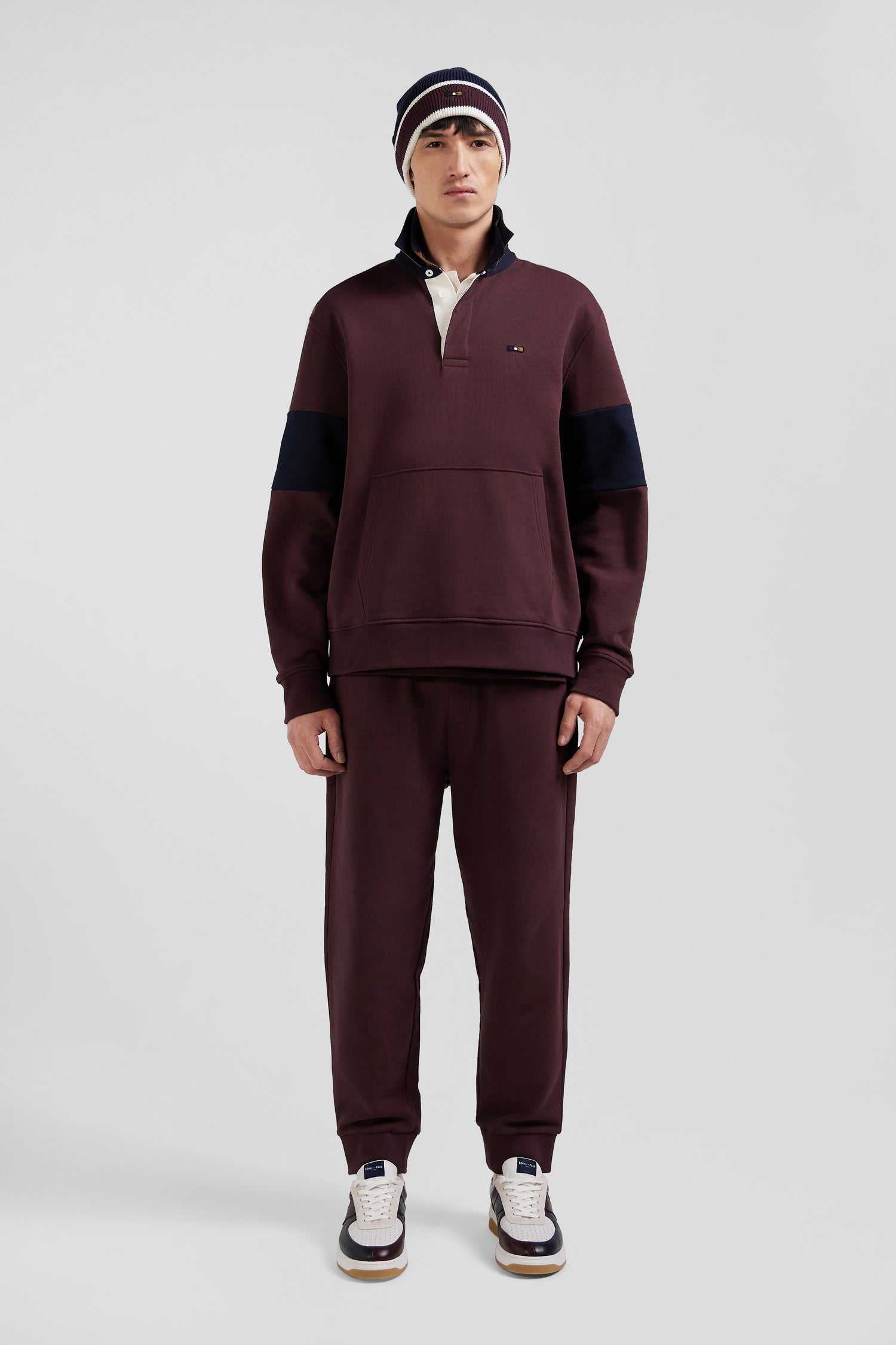 Relaxed burgundy cotton sweatshirt with rugby shirt collar