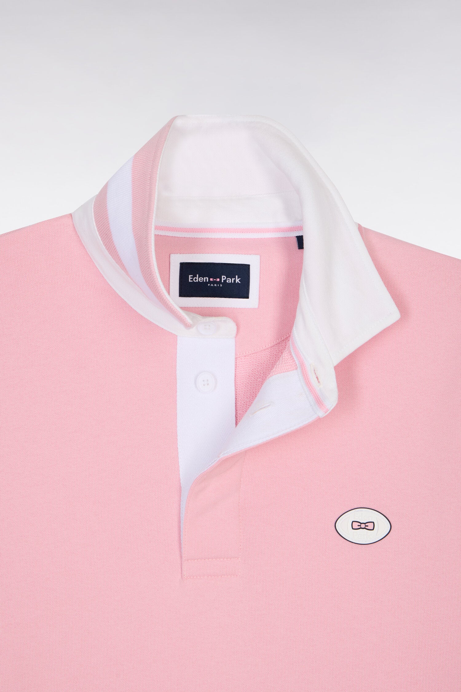 Ce sweatshirt homme revisite l’iconique maillot de rugby dans une version contemporaine adapté à l'extérieur du terrain. Le col maillot contrasté à dessous de col rayé, les bandes découpées bicolores sur les manches et le badge poitrine signent une silhouette sport chic lumineuse. Confectionné dans un molleton doux, ce sweatshirt apporte une touche preppy idéale pour les looks décontractés de mi-saison. Un modèle intemporel masculin offert en ciel, rose ou marine. À Porter avec un jean ou son short en molleton pour un total look d'inspiration retour de l'entrainement.