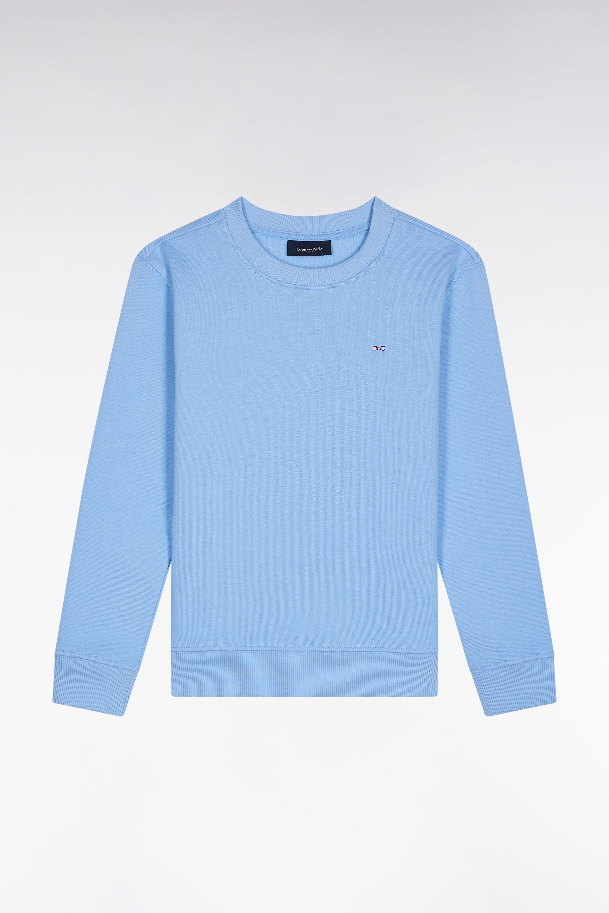 In sky blue or navy, this sweatshirt is a mainstay in the wardrobe of youngsters. Made from soft, comfortable cotton fleece, it features our signature embroidery, the pink thread bow tie, and ribbed trims for a perfect fit. Matching it will be child's play!
