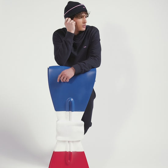 The timeless round-neck fleece sweatshirt is available for the autumn-winter season in the timeless shades of our men's collection. Worn with jogging pants or jeans, this comfortable men's sweatshirt will dress you up for any occasion. A chest embroidery featuring our signature bow tie marks this timeless piece of men's casual wardrobe.
