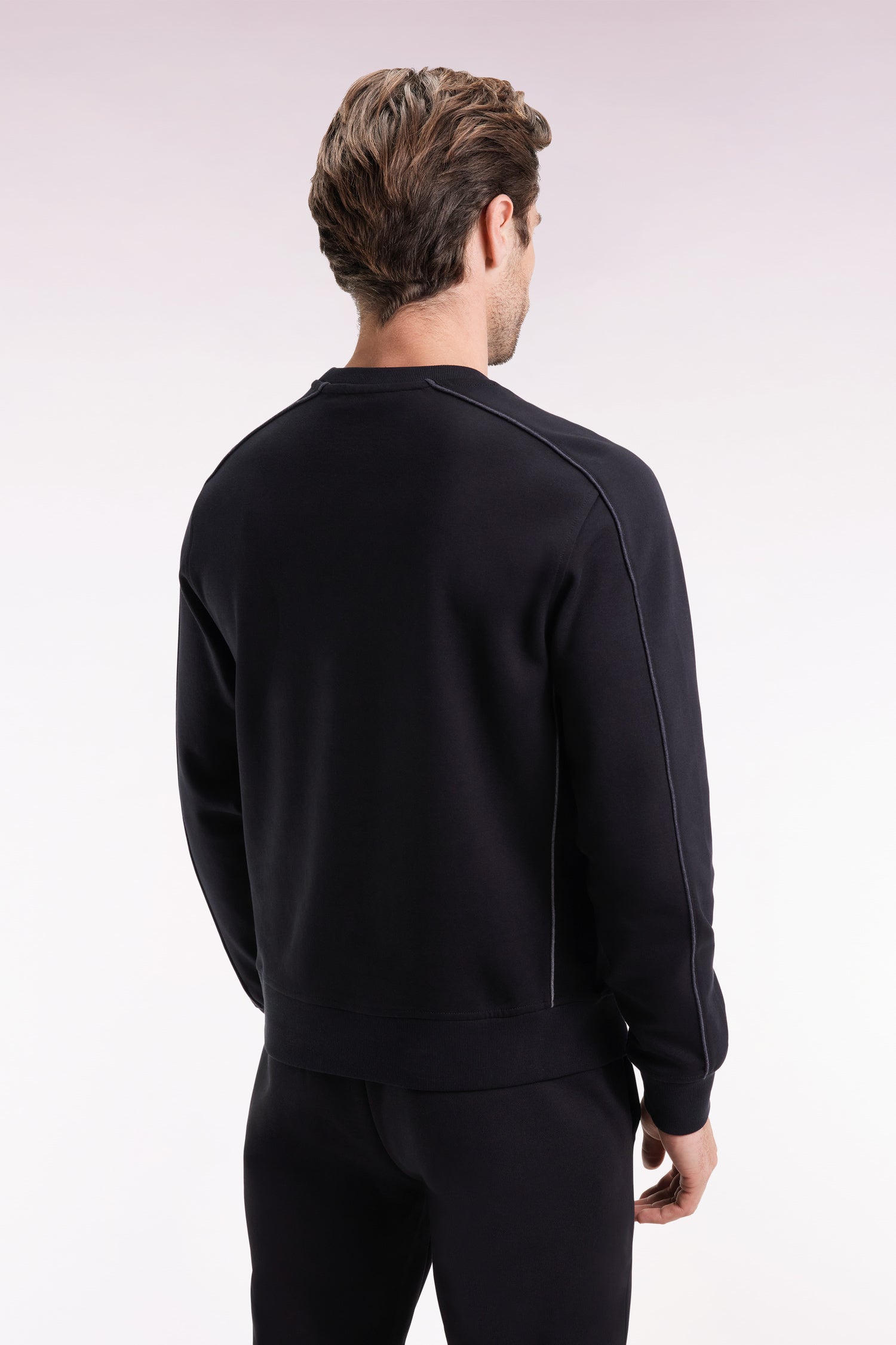 Jogging suit in black brushed fleece, straight cut