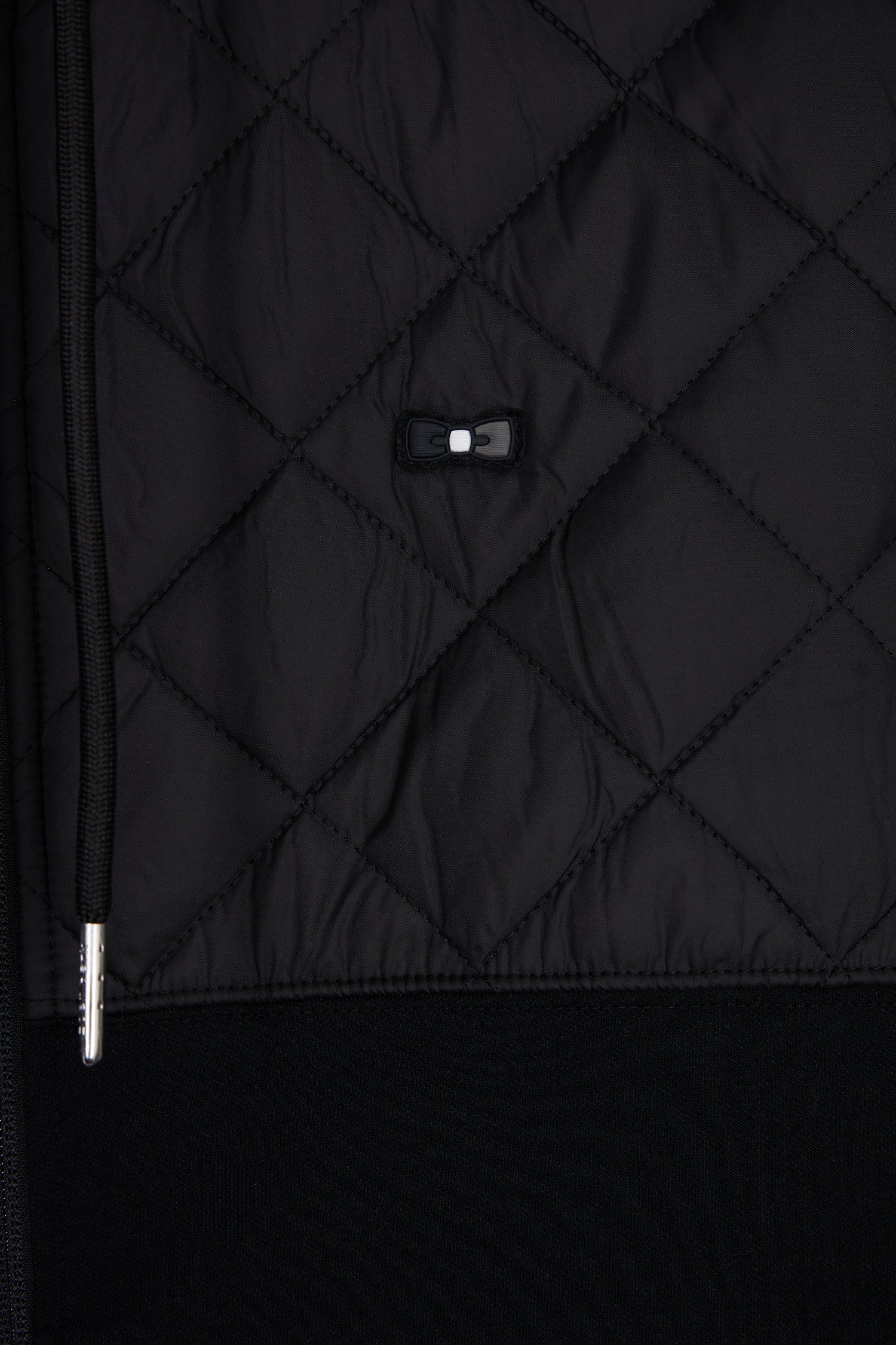 Zipped sweatshirt in black and grey quilted bimaterial interlock