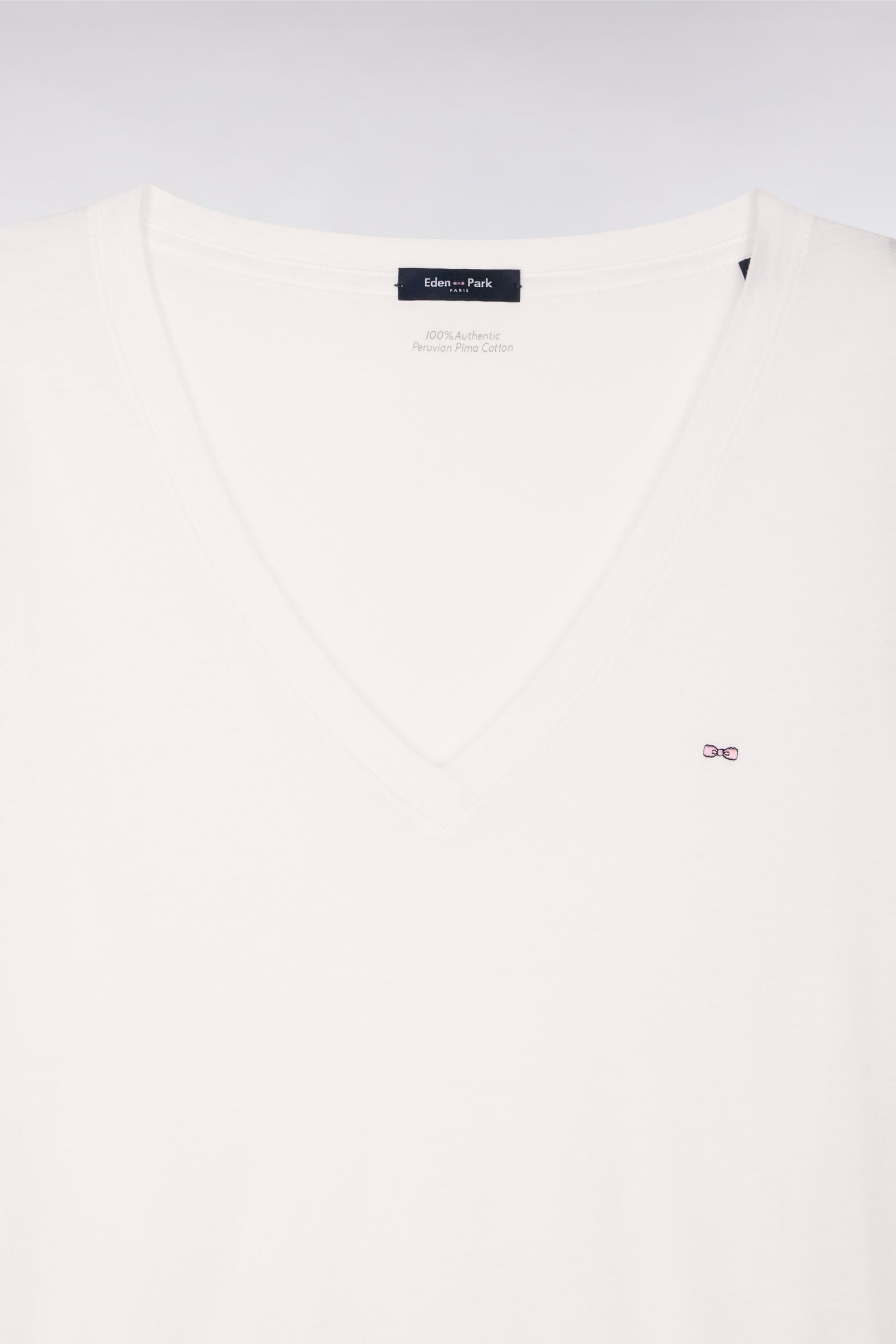 T-shirt à manches courtes col V en coton Pima blanc coupe regular
