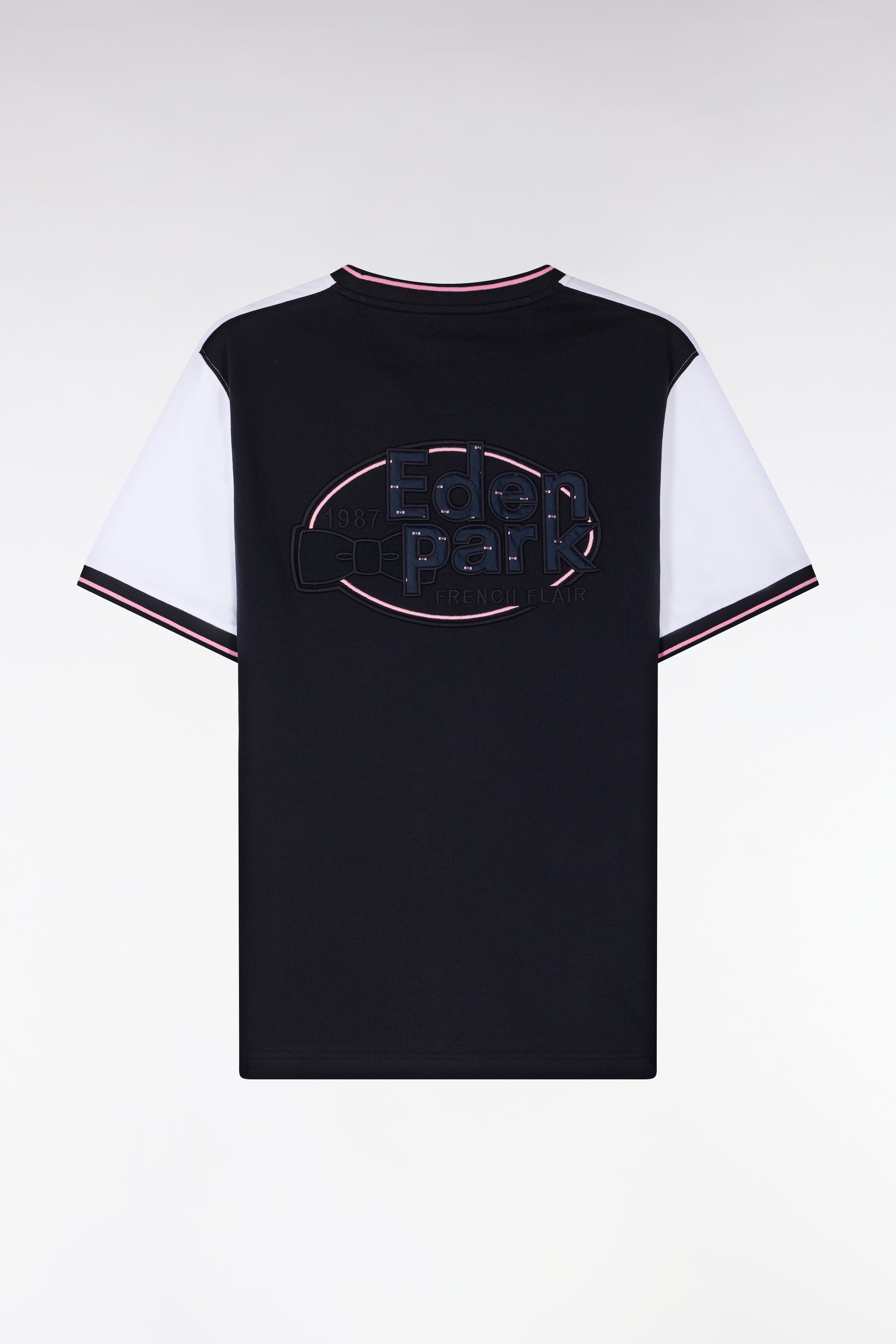 T-shirt à manches courtes en bicolore blanc et marine coupe regular
