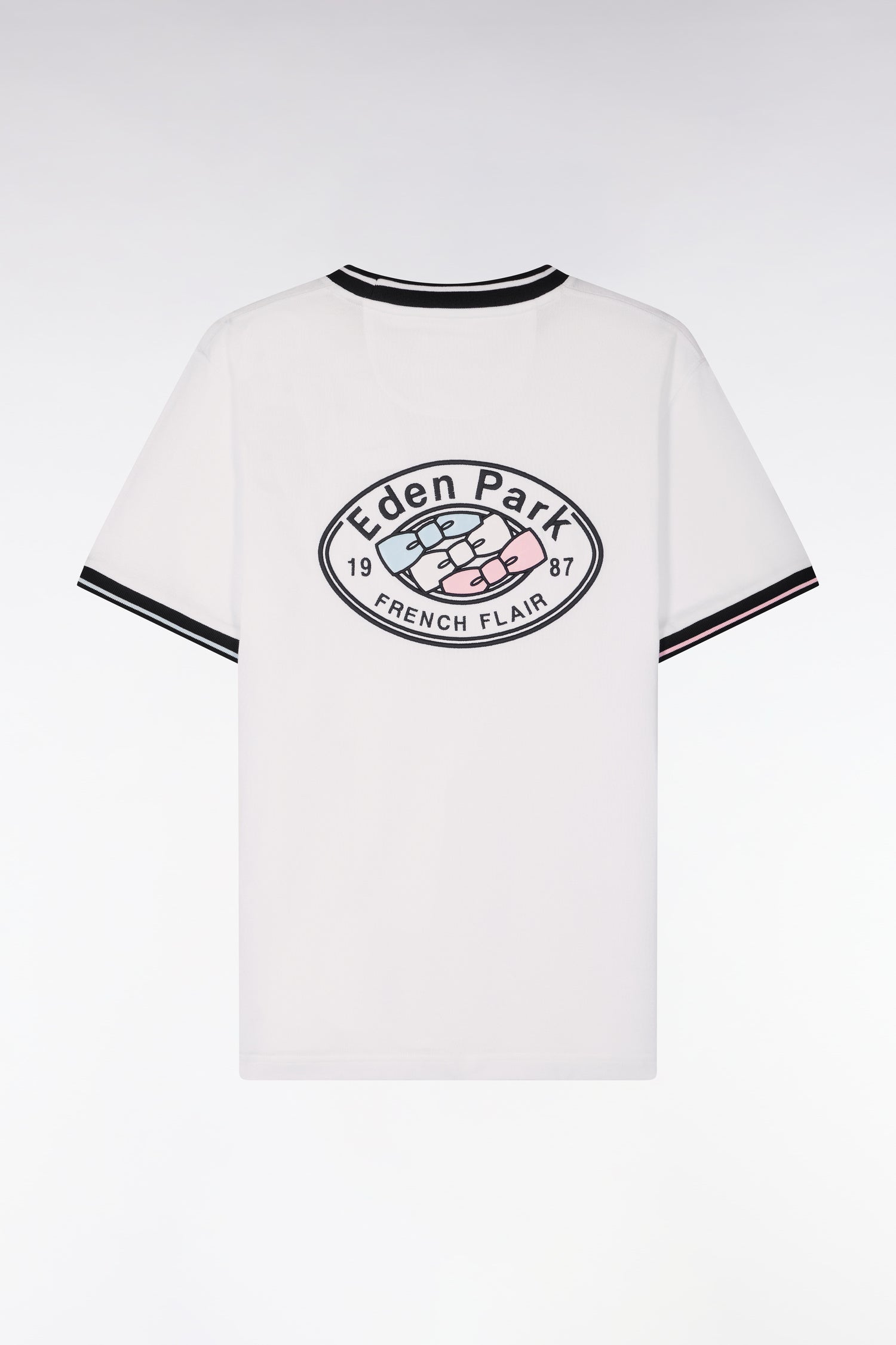 Pensé comme un basique revisité pour enrichir vos tenues du printemps-été, ce T-shirt à manches courtes en jersey de coton blanc mise sur un détail visuel fort pour structurer la silhouette : une large broderie dos inspirée du rugby et des codes forts de notre Maison. Une pièce polyvalente, idéale pour composer des looks simples mais soignés associé à un jean, un jogging comme à un short en vacances.