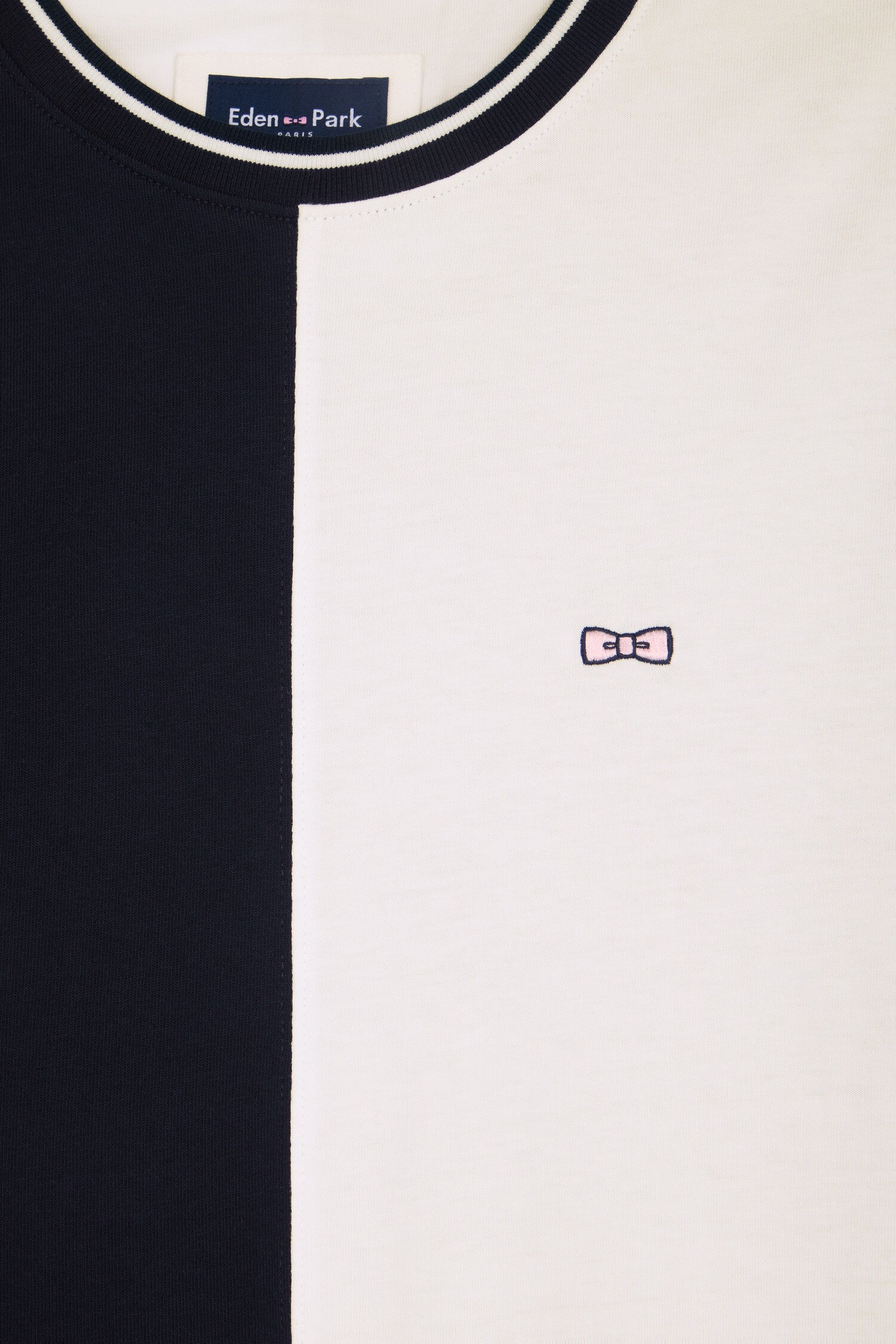 Inspiré de l’univers rugby et des codes Eden Park, ce T-shirt à manches courtes en jersey de coton associe confort et caractère ponctué de bords-côtes tricotés à liseré rayé. Son colorblock soigné dynamise la silhouette sans excès, offrant une allure moderne pour vos moments de détente. Un T-shirt homme facile à associer à un jean ou un jogging.