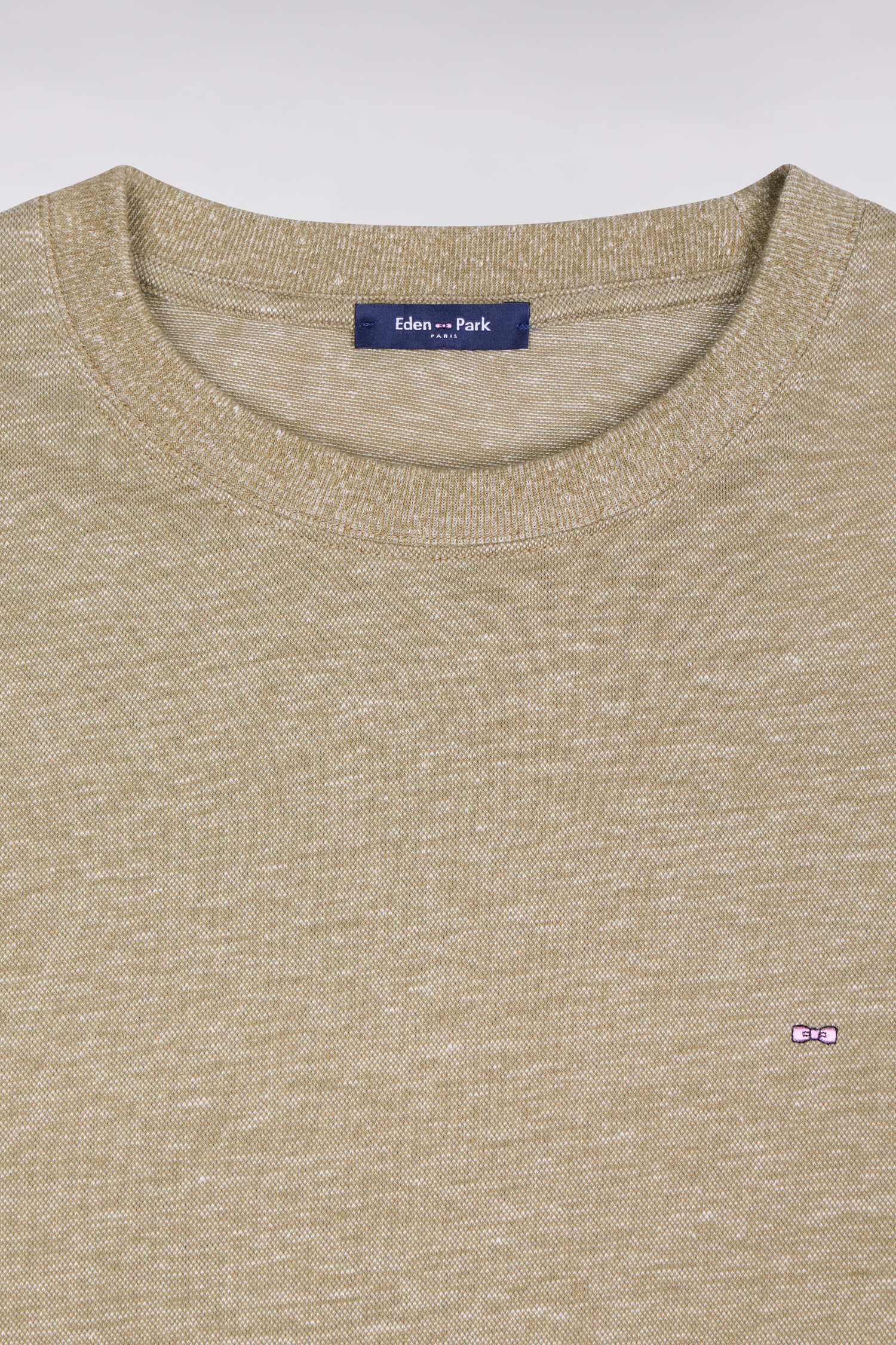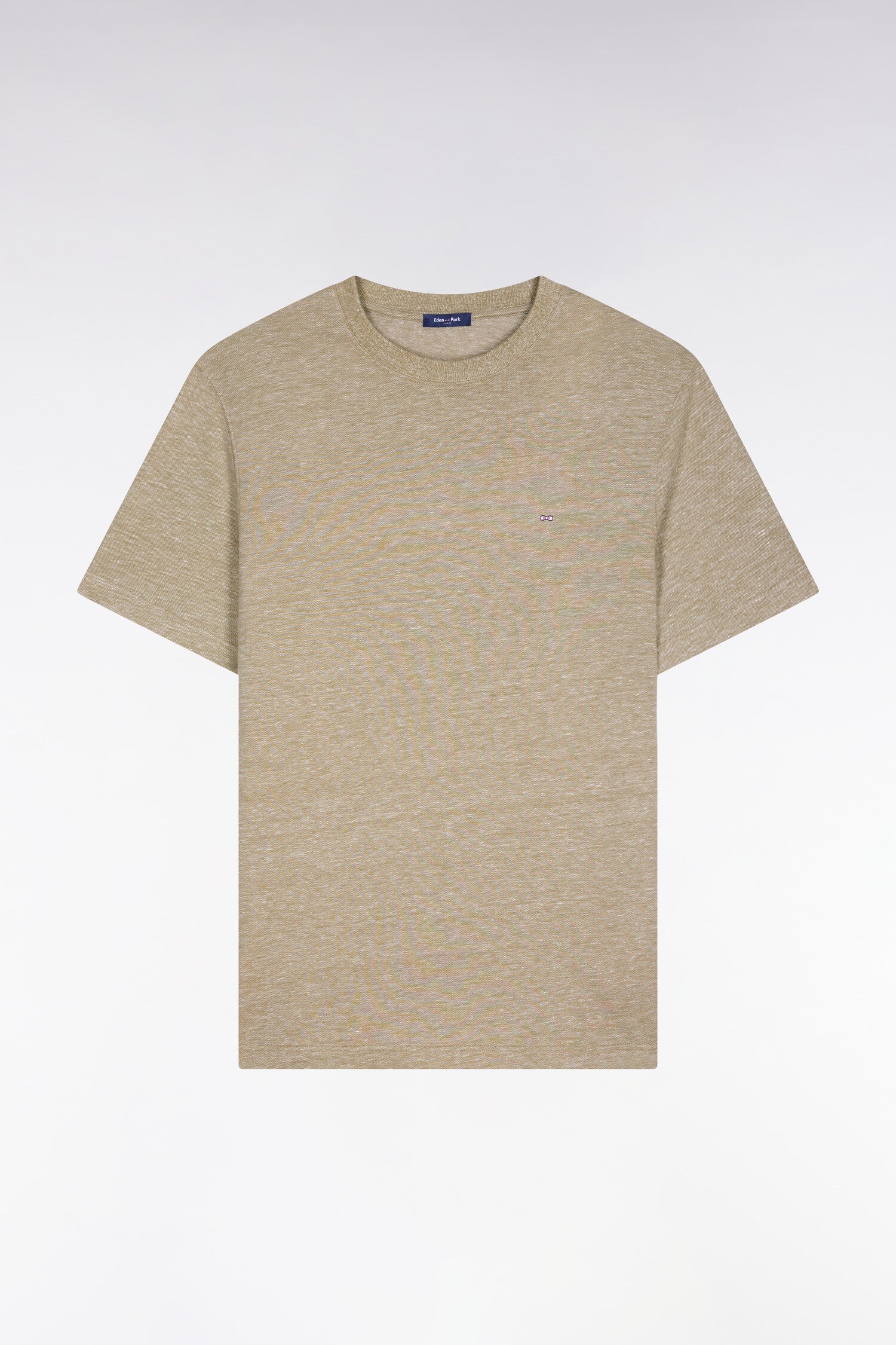 T-shirt à manches courtes en coton et lin grège coupe regular
