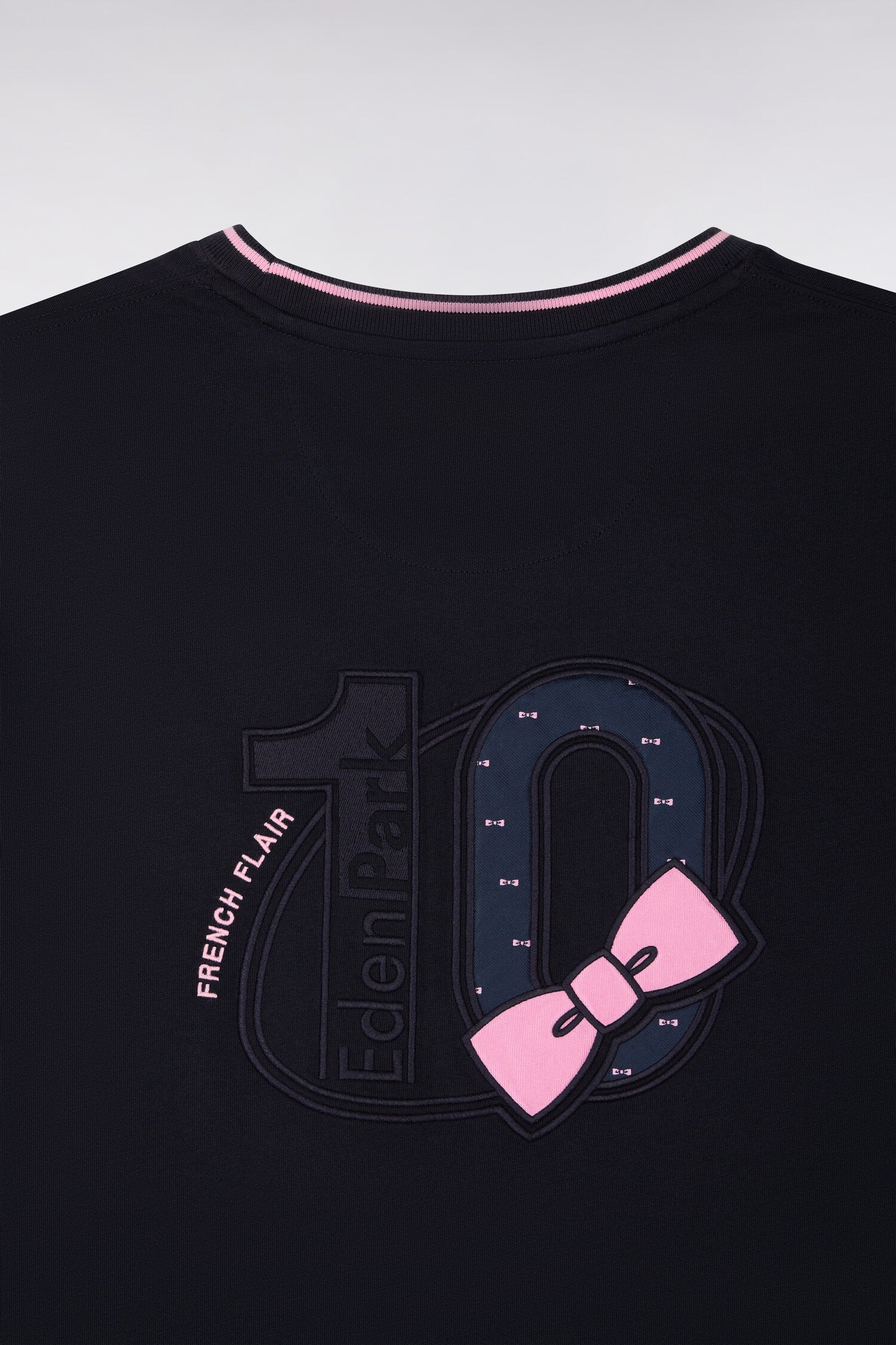 T-shirt à manches courtes en coton marine manches roses coupe regular