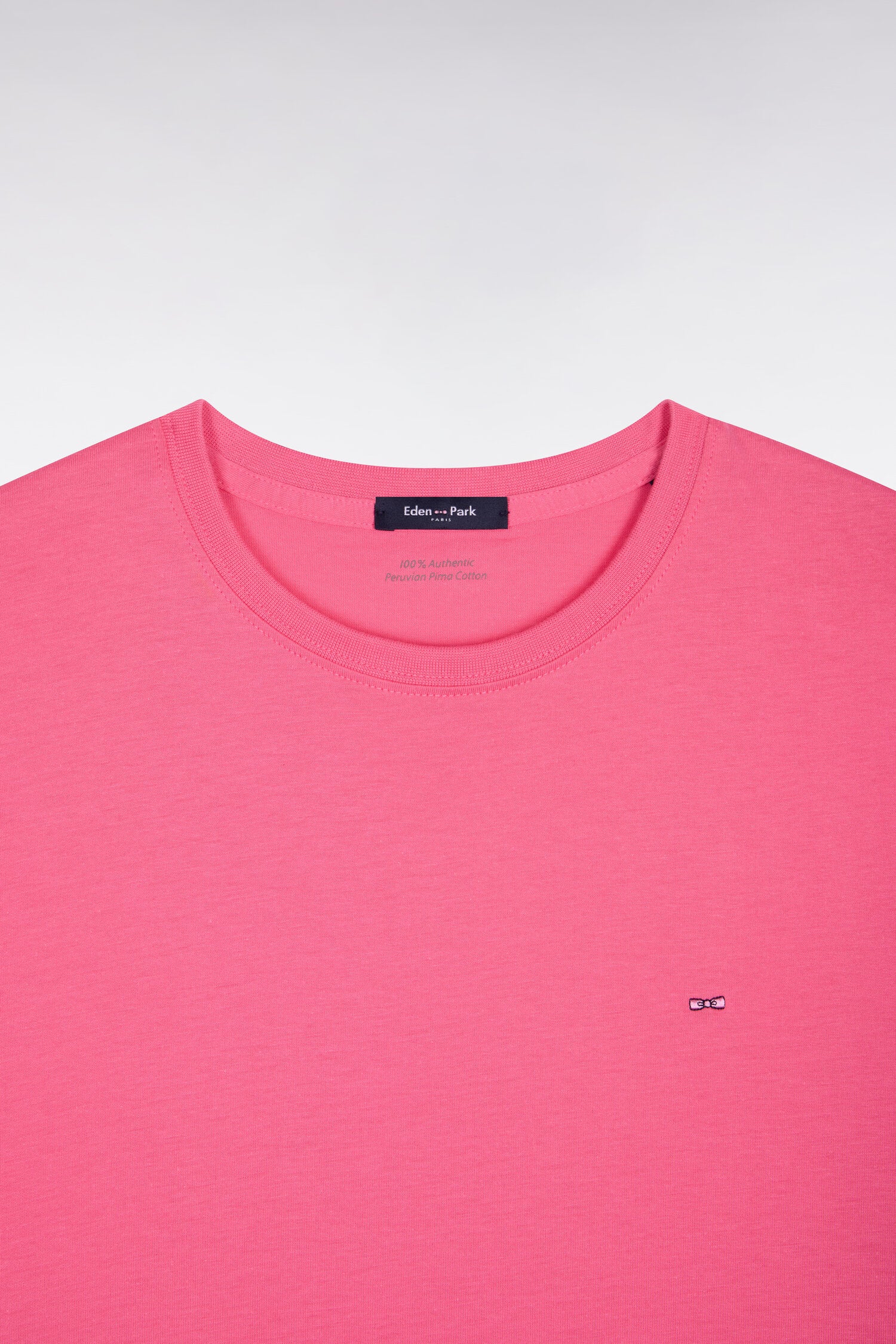 L'intemporel T-shirt à manches courtes Eden Park en jersey de coton est proposé dans un luxueux coton Pima, plus durable et respectueux de l'environnement. Brodé de notre emblème, le nœud papillon rose sur la poitrine, ce modèle se porte été comme hiver, seul comme en base pour vos jeux de superposition. Décliné dans un grand choix de coloris.
