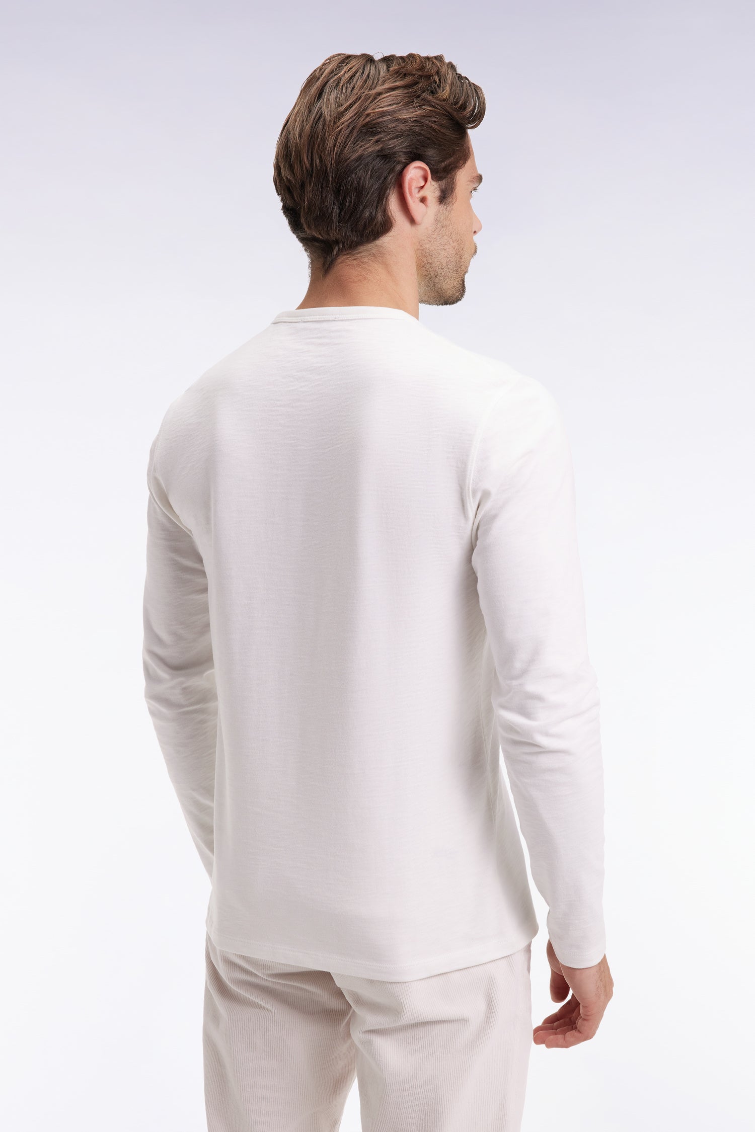 This long-sleeved T-shirt is made from slub cotton jersey for a natural textured effect in a wide range of colors. The ribbed neckline gives it a comfortable fit. An everyday wardrobe staple, to be worn alone or layered.