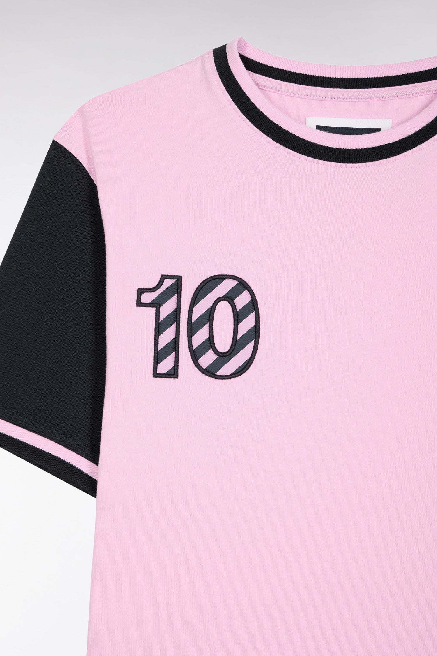 Two-tone short-sleeved navy cotton T-shirt with 10" embroidery