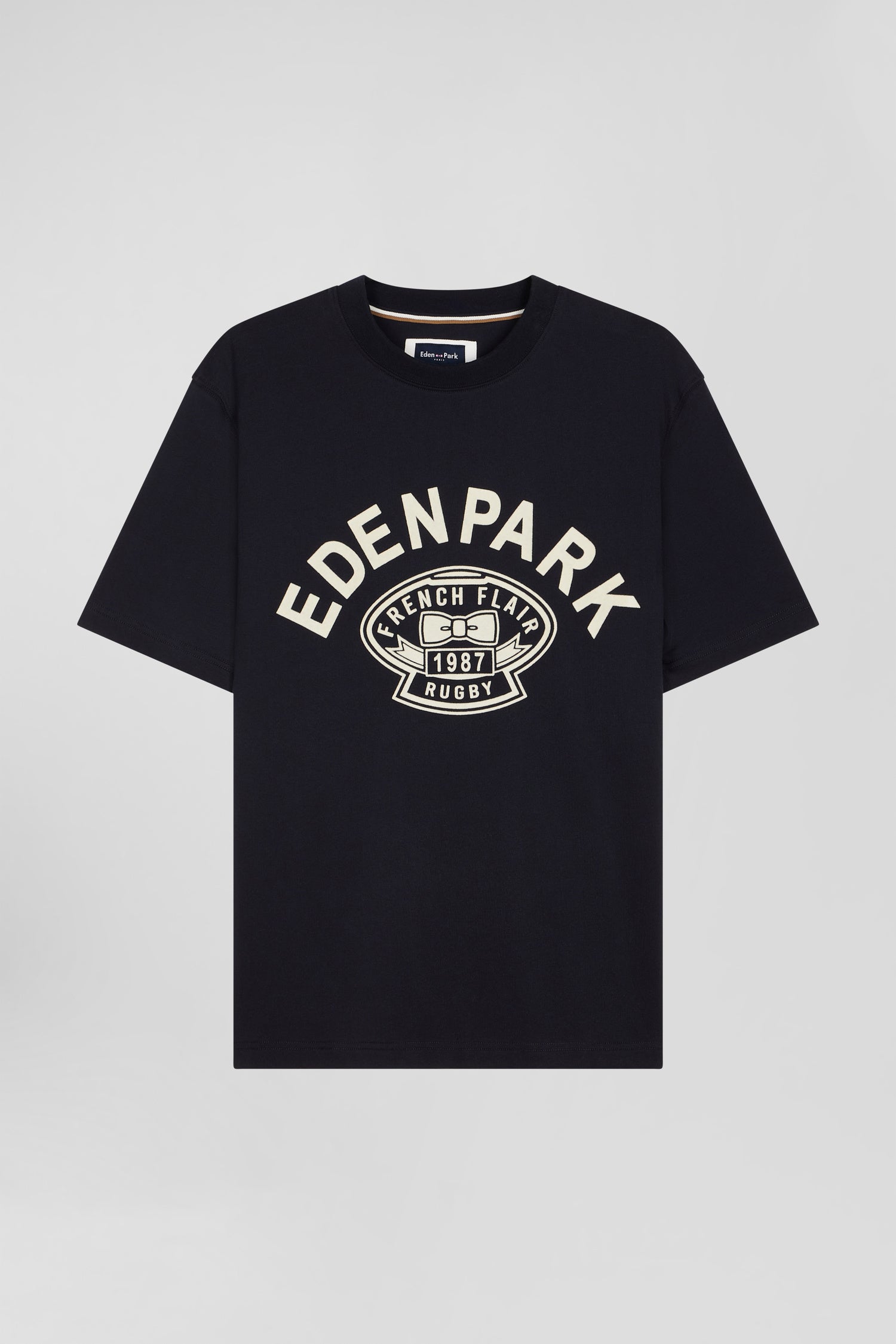 Oversize navy short-sleeved cotton T-shirt with Eden Park Rugby print