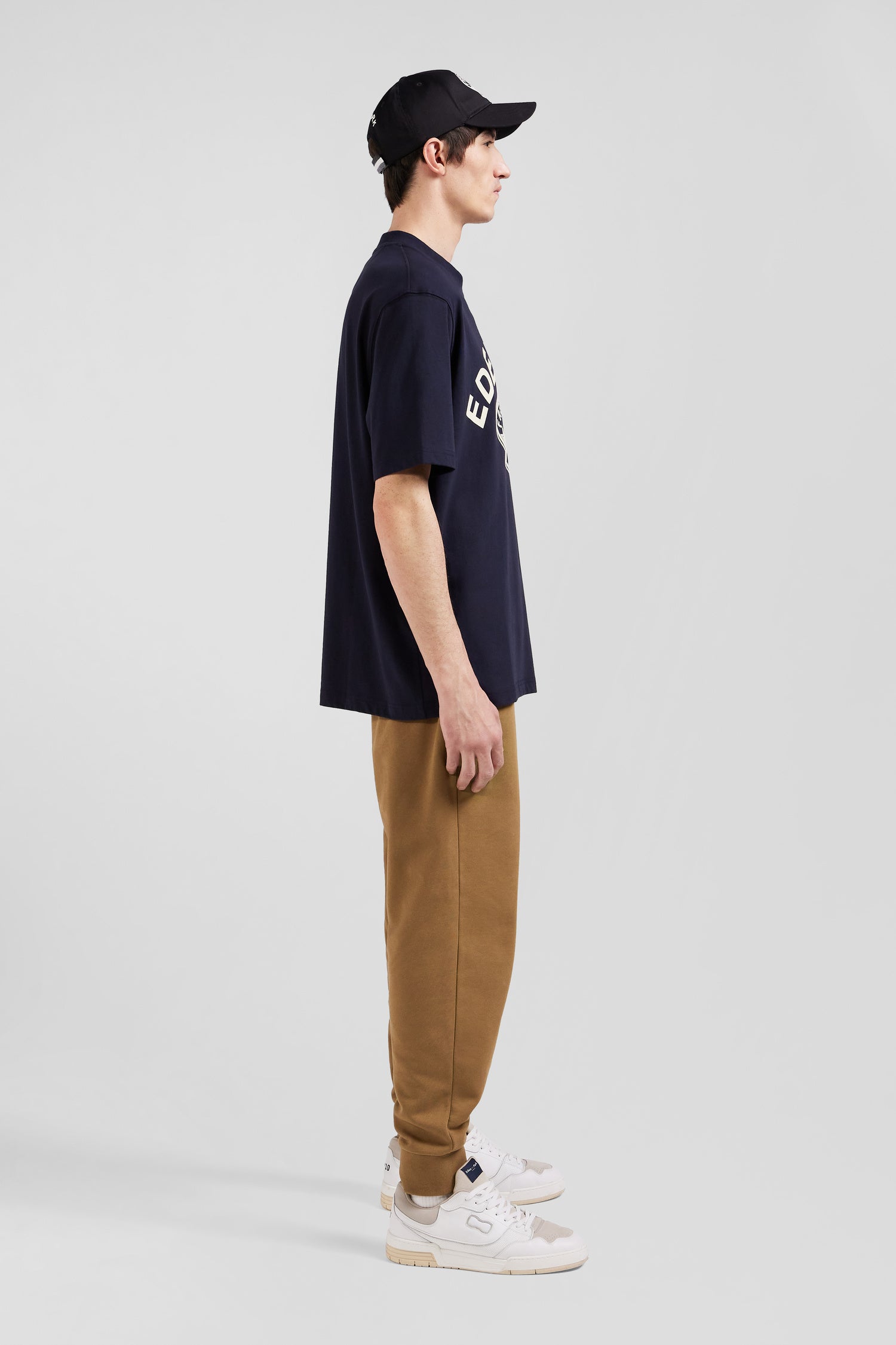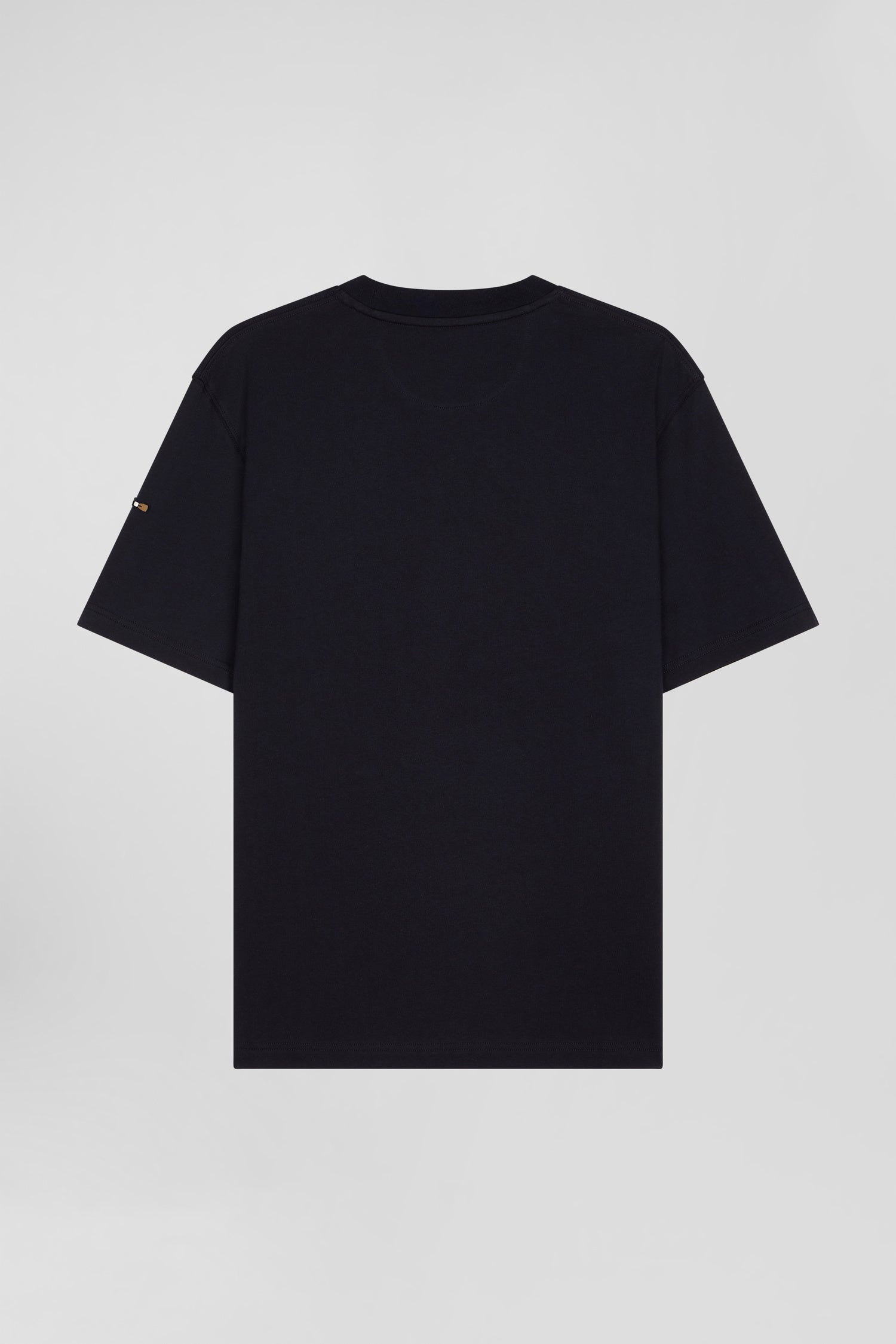 This varsity-inspired T-shirt for men features an ecru velvet appliqué on a navy background, or tone-on-tone for the black version. With its oversized cut, this T-shirt promises comfort and style for everyday wear.