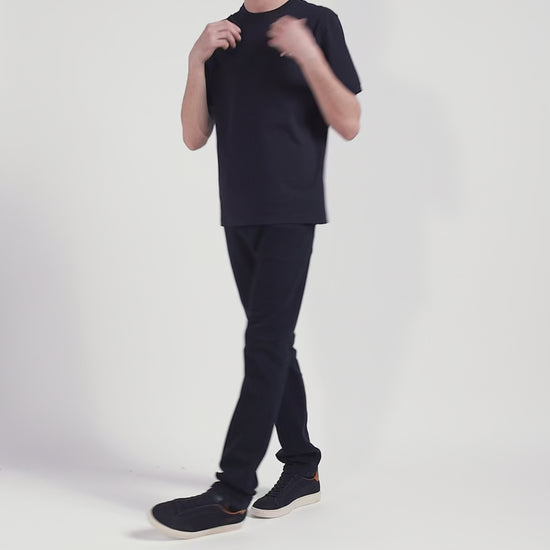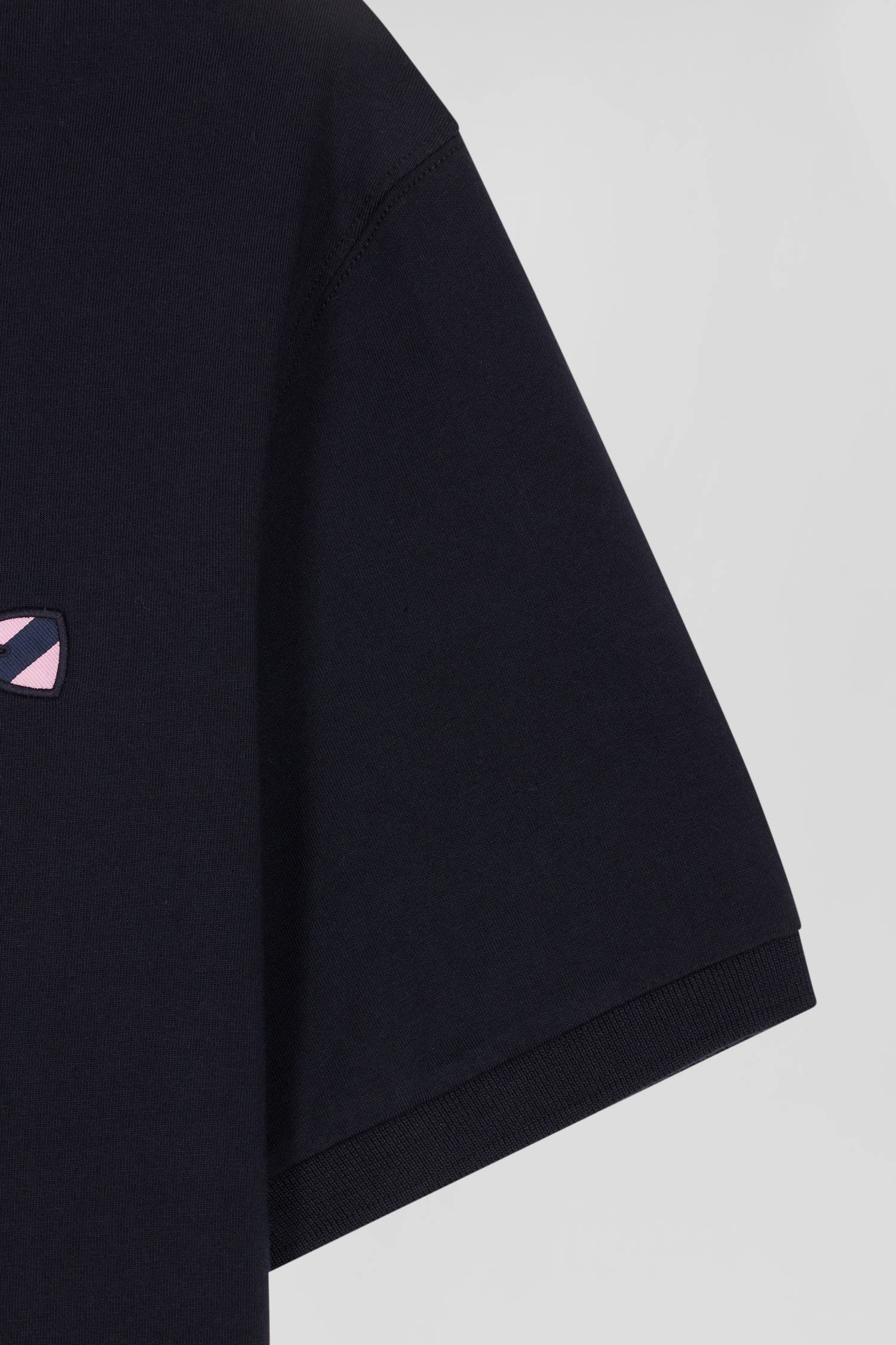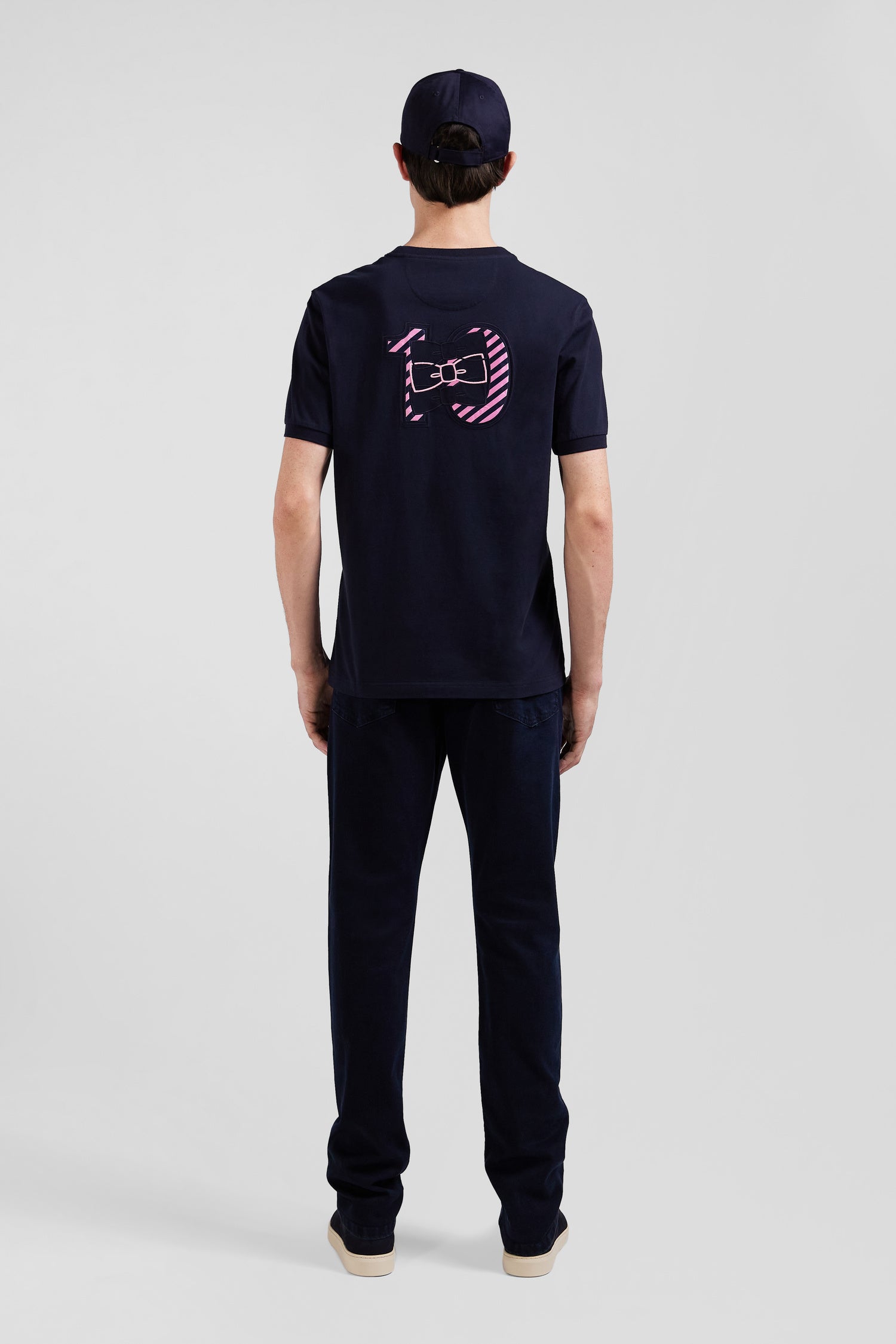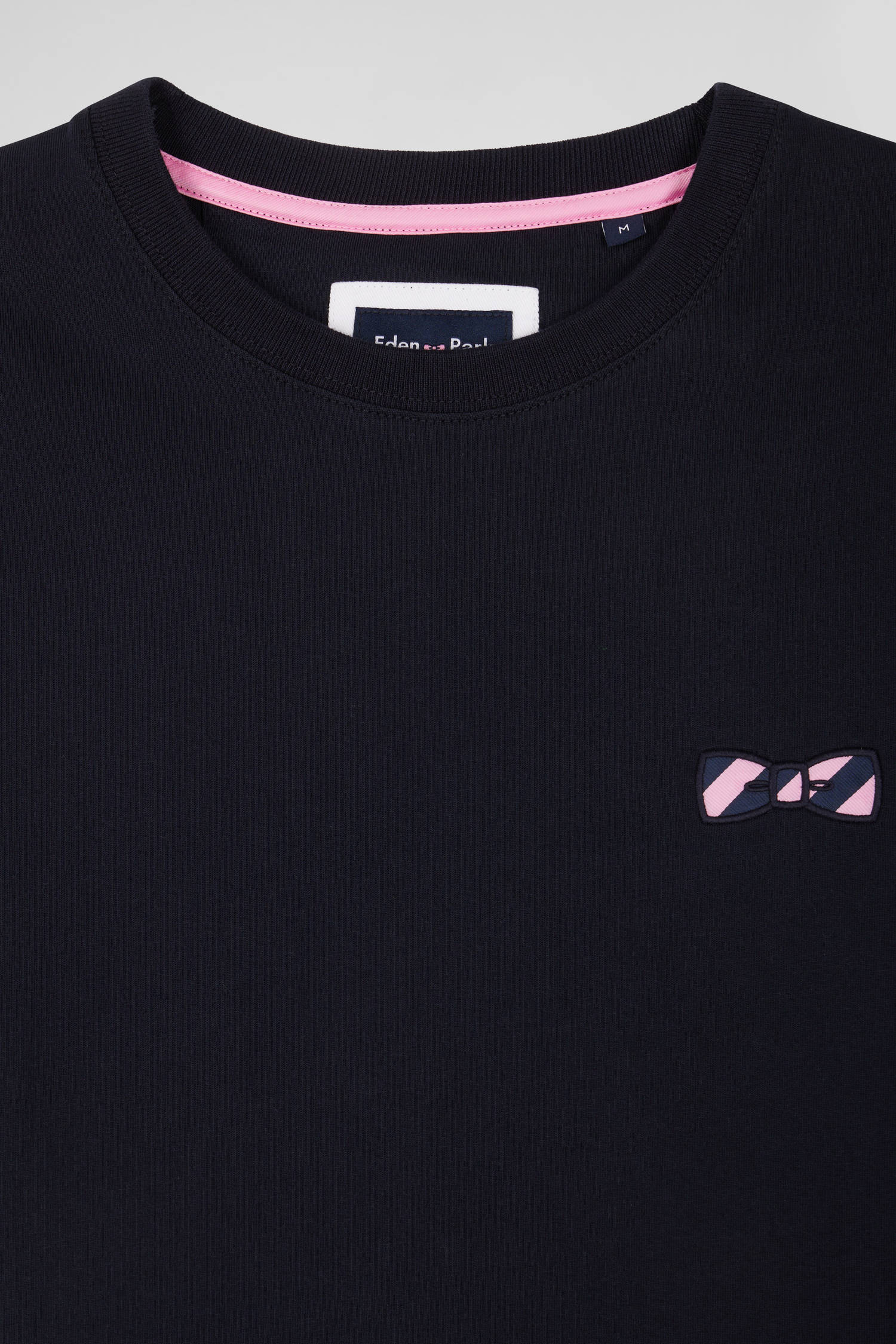 Regular navy short-sleeved cotton T-shirt with striped embroidery