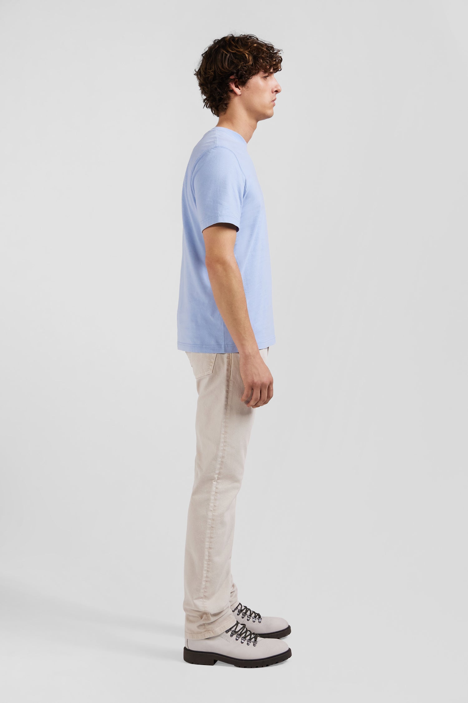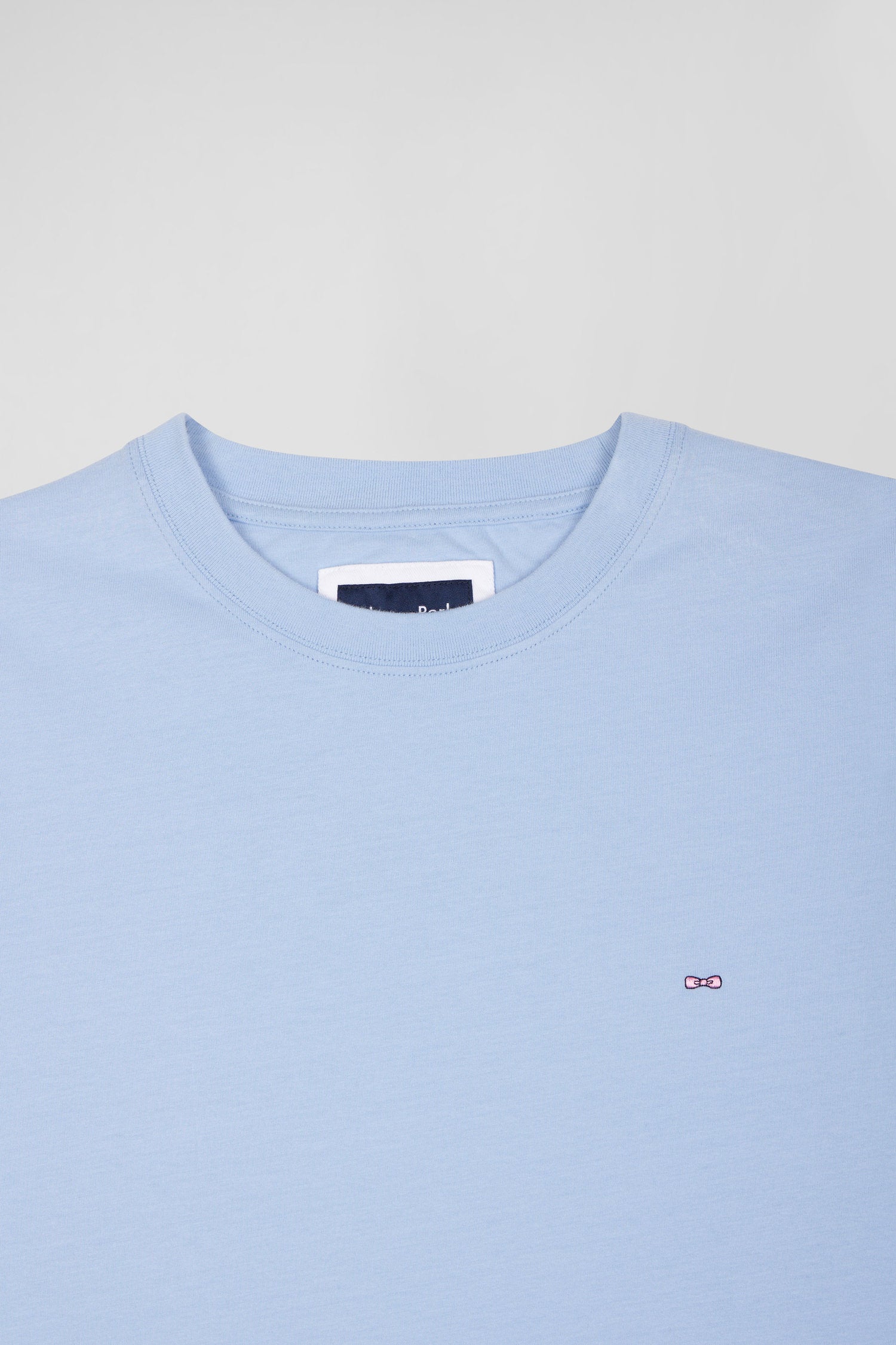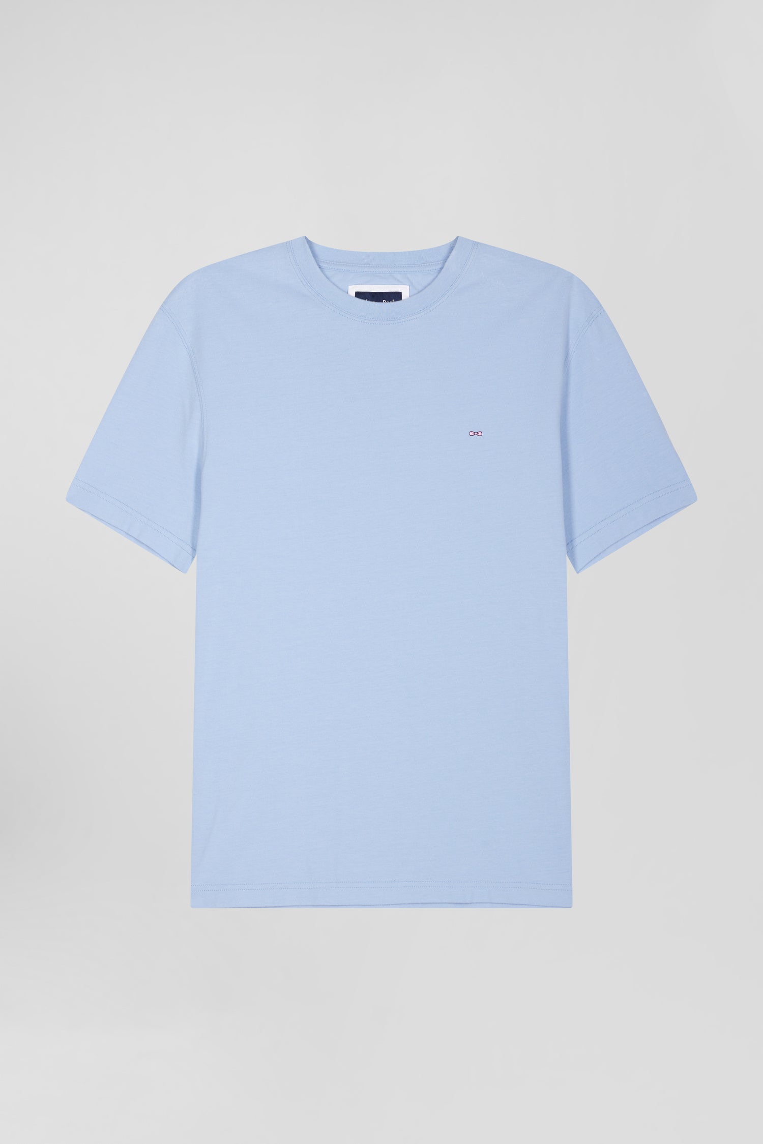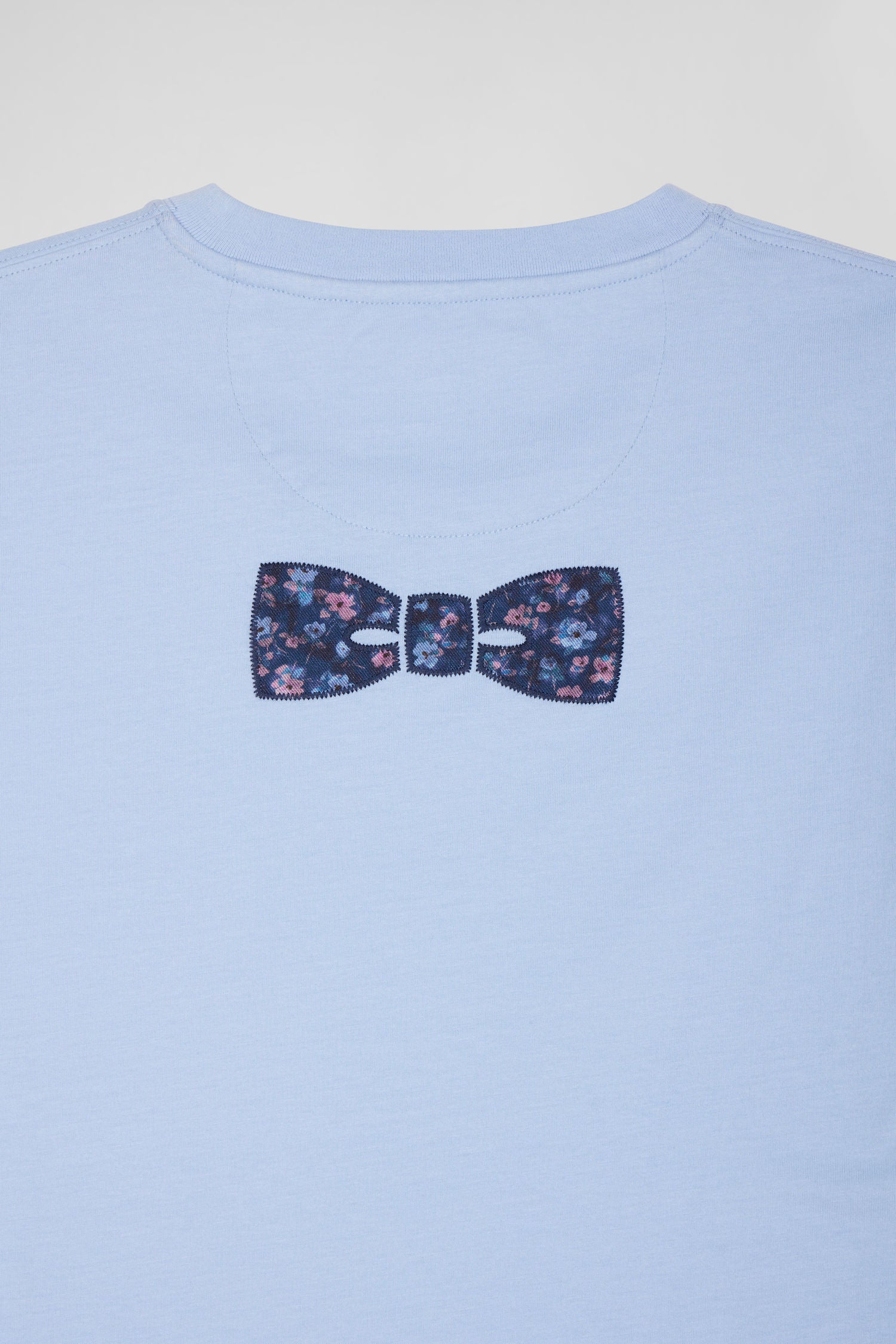 Regular sky blue short-sleeved cotton T-shirt with back patch