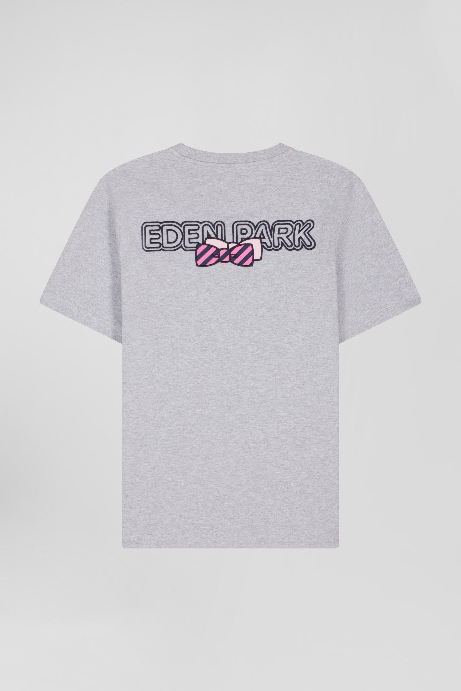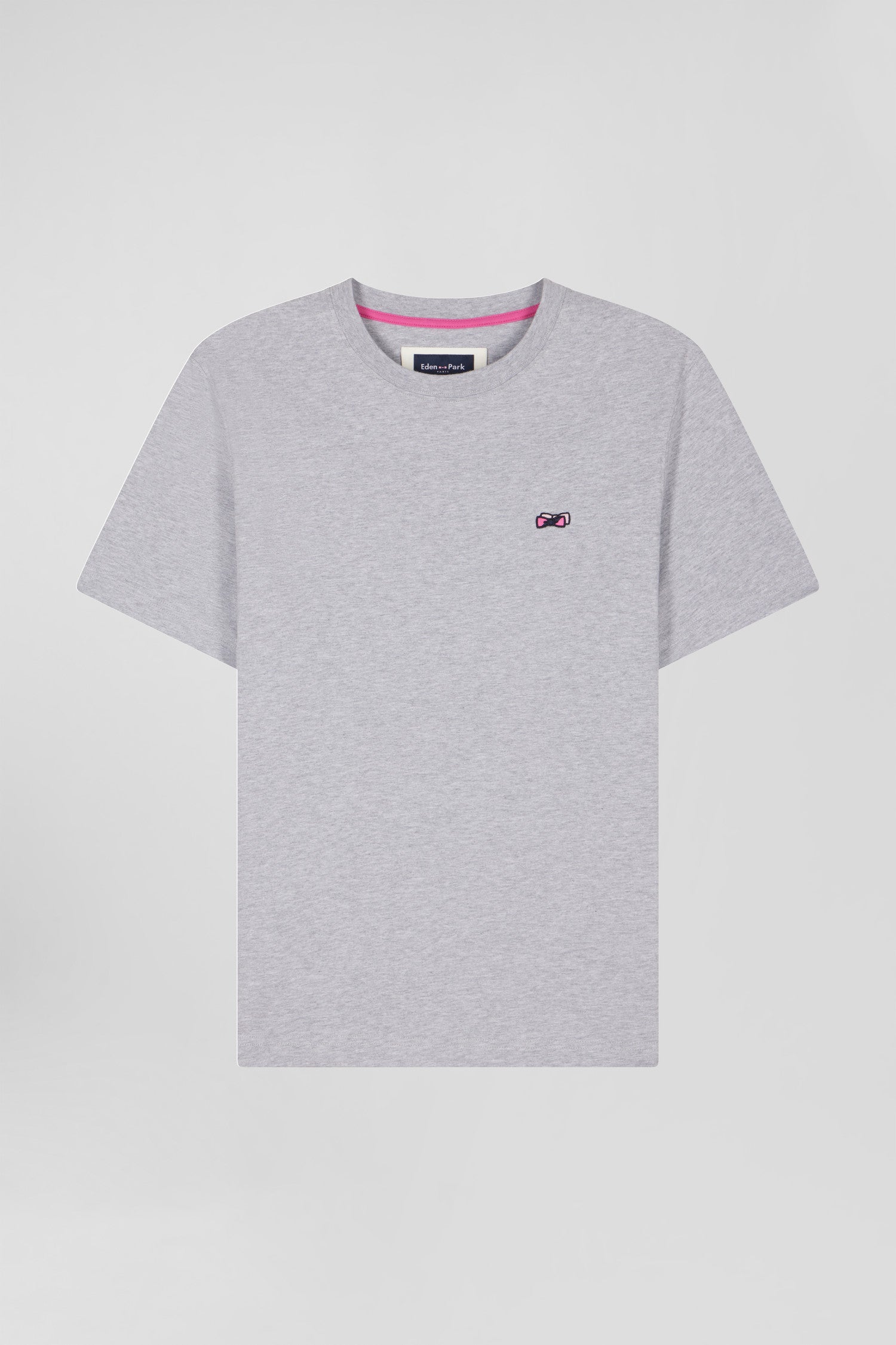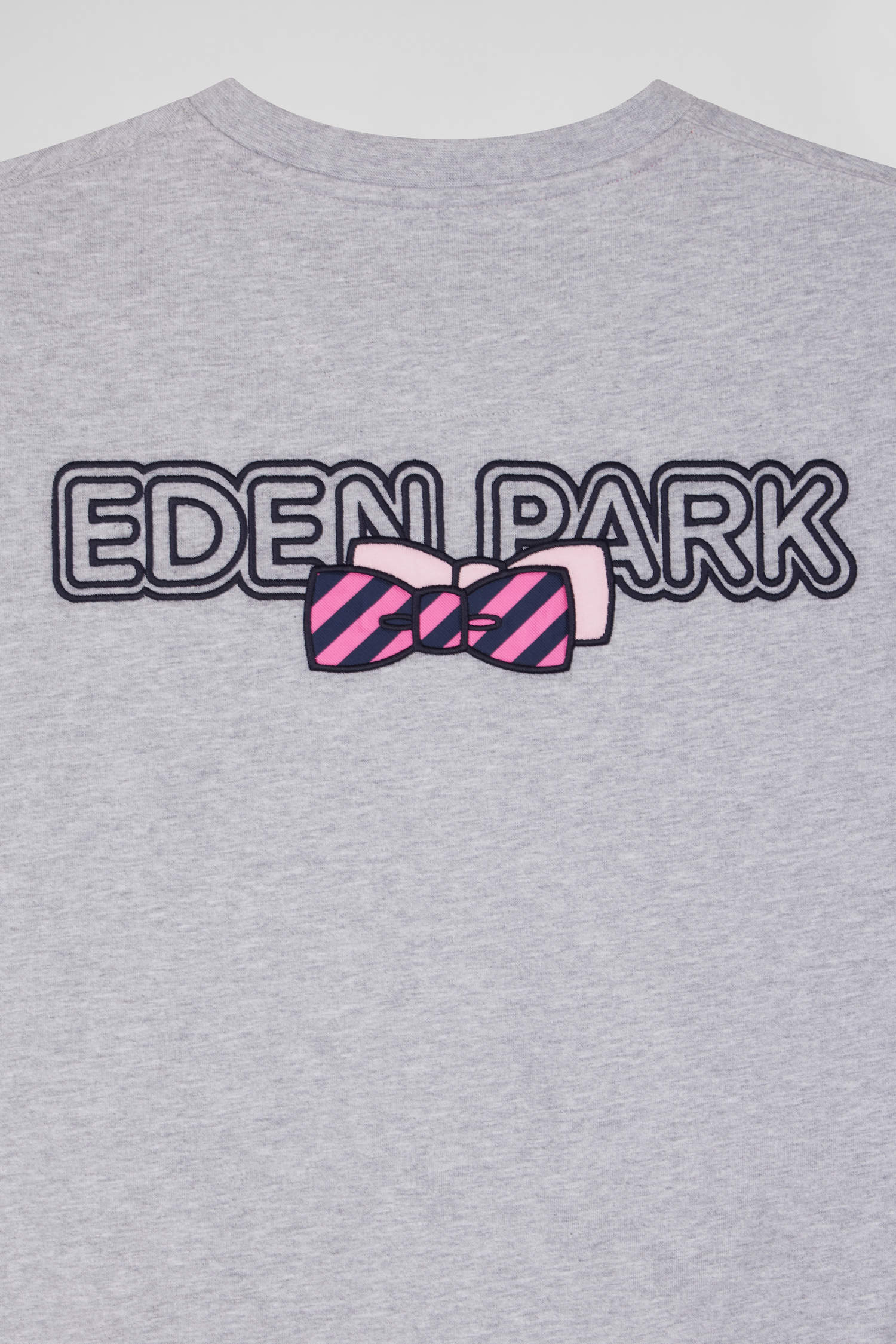 This men's round-neck T-shirt in soft, comfortable cotton jersey features all the iconic Eden Park finishing touches. Our iconic bow tie is presented by the application of a hooped tie fabric added to its back embroidery.