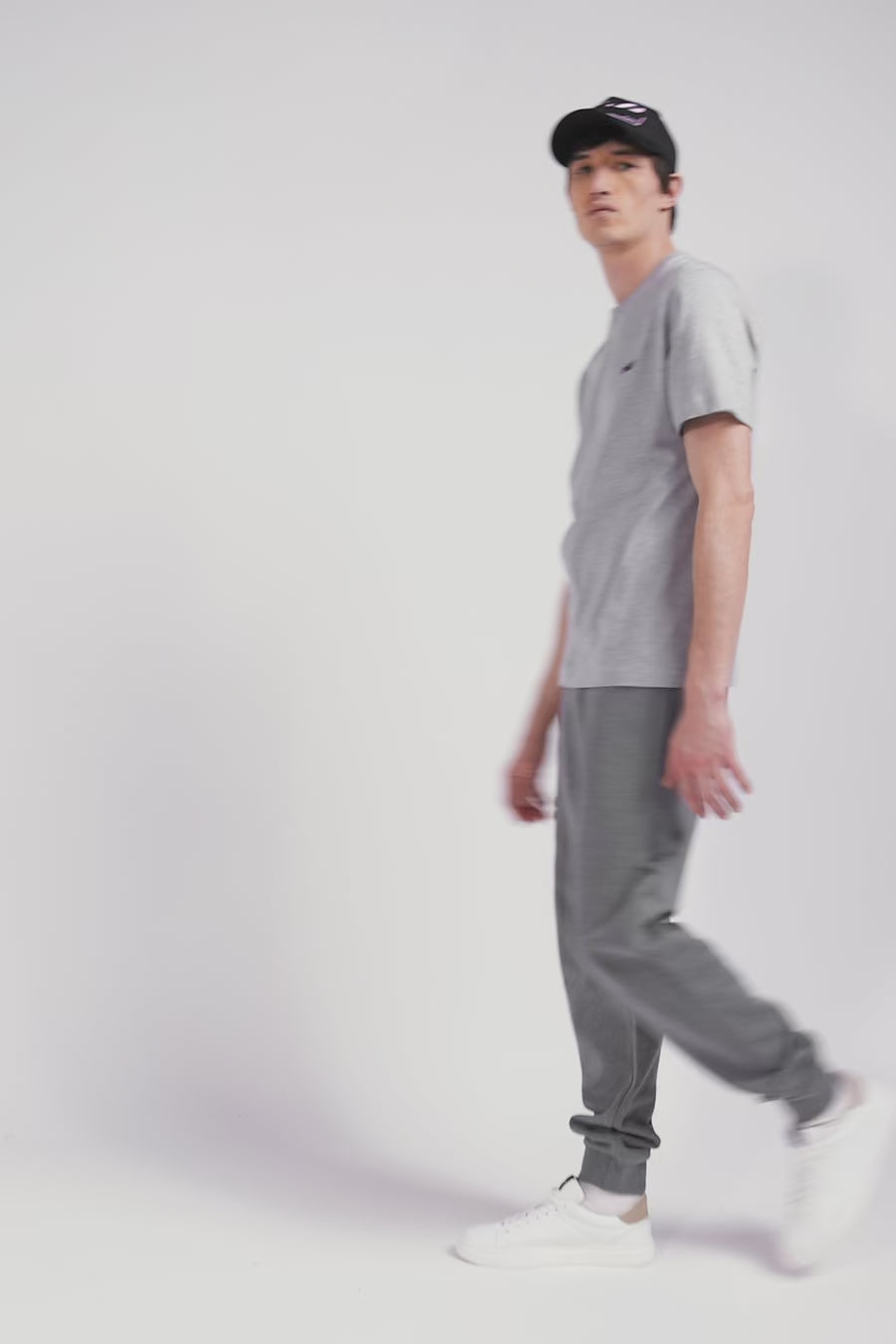 Regular grey short-sleeved cotton T-shirt with back embroidery