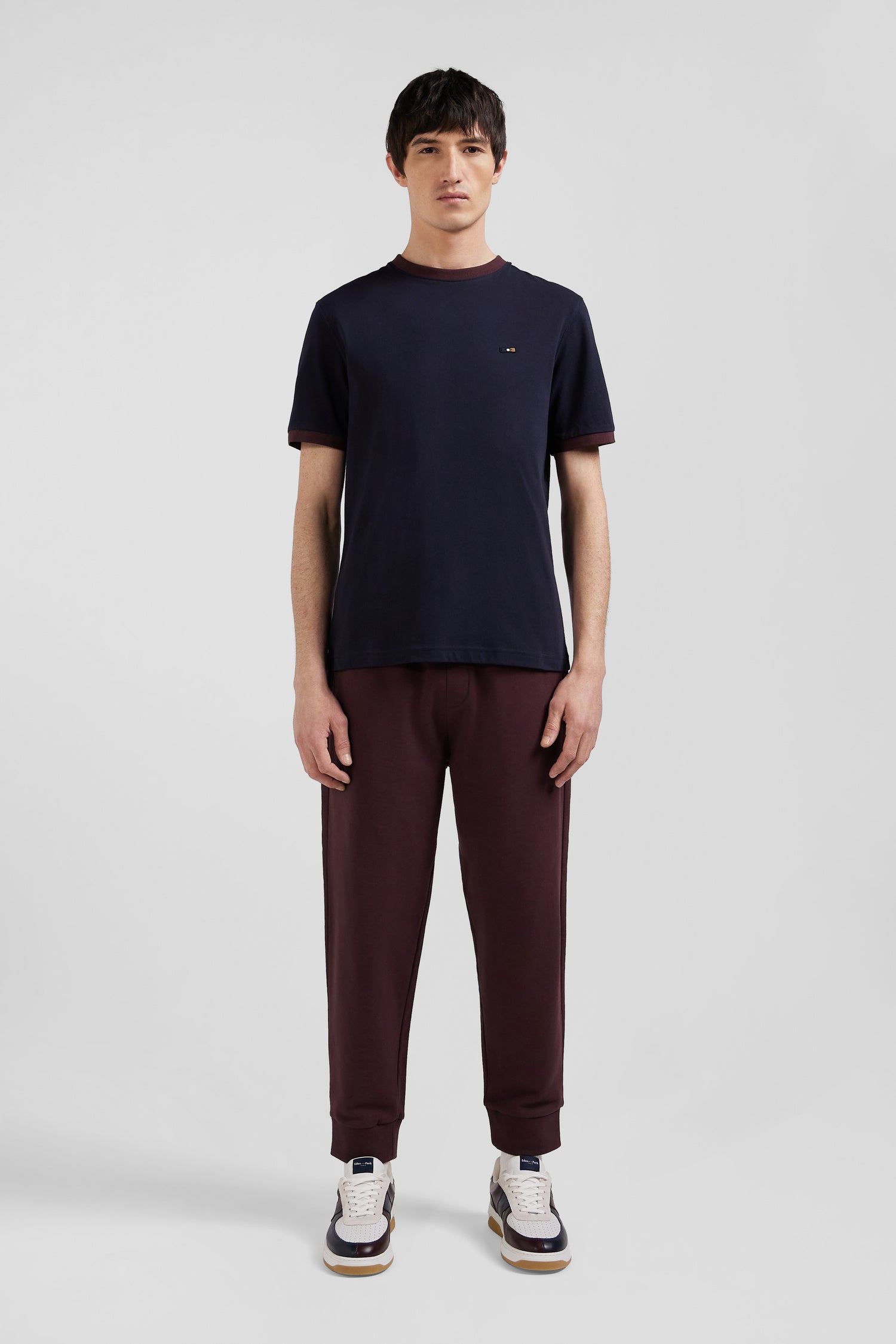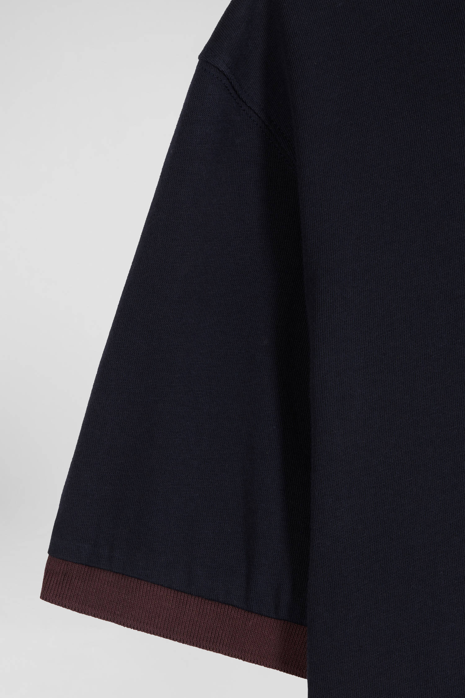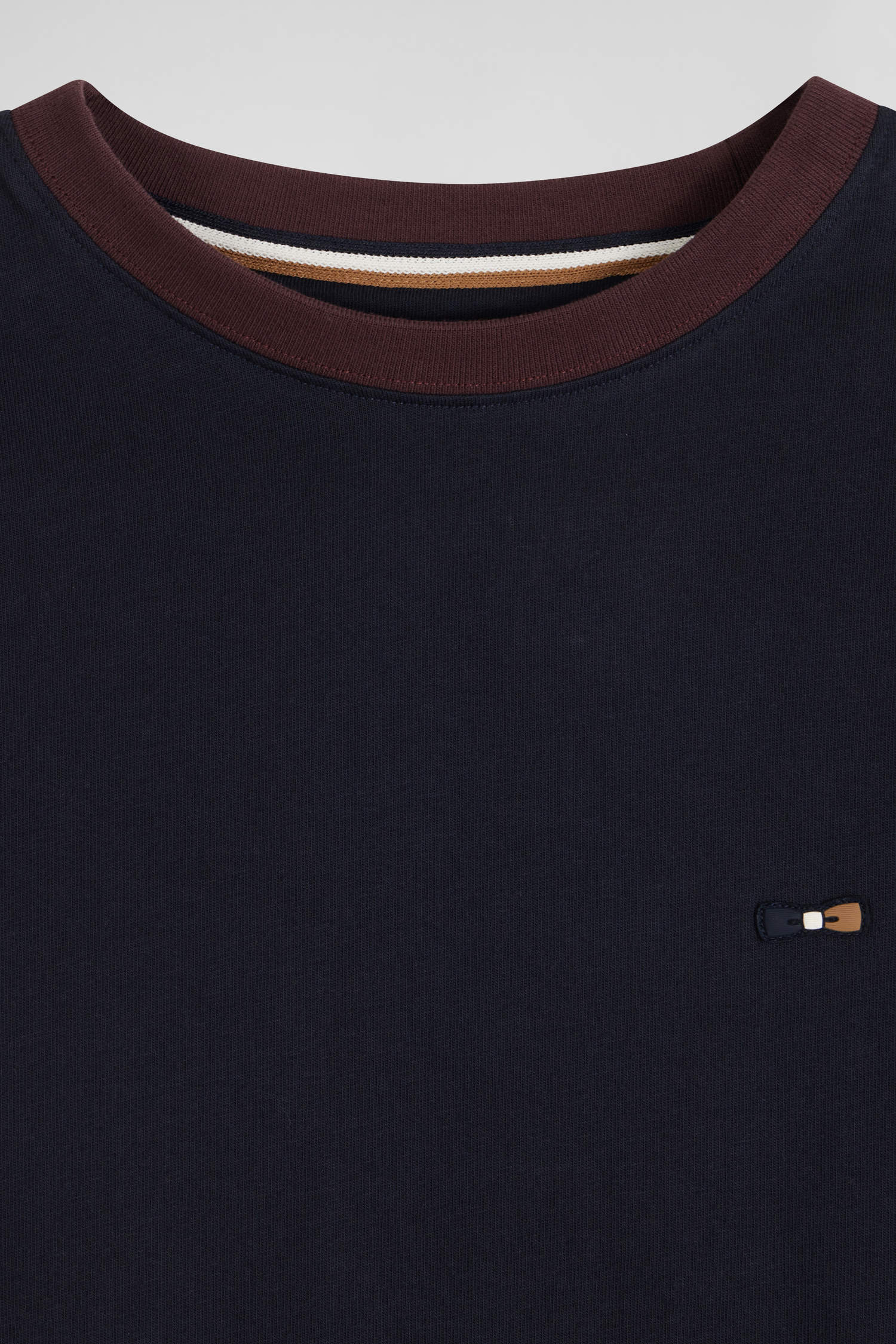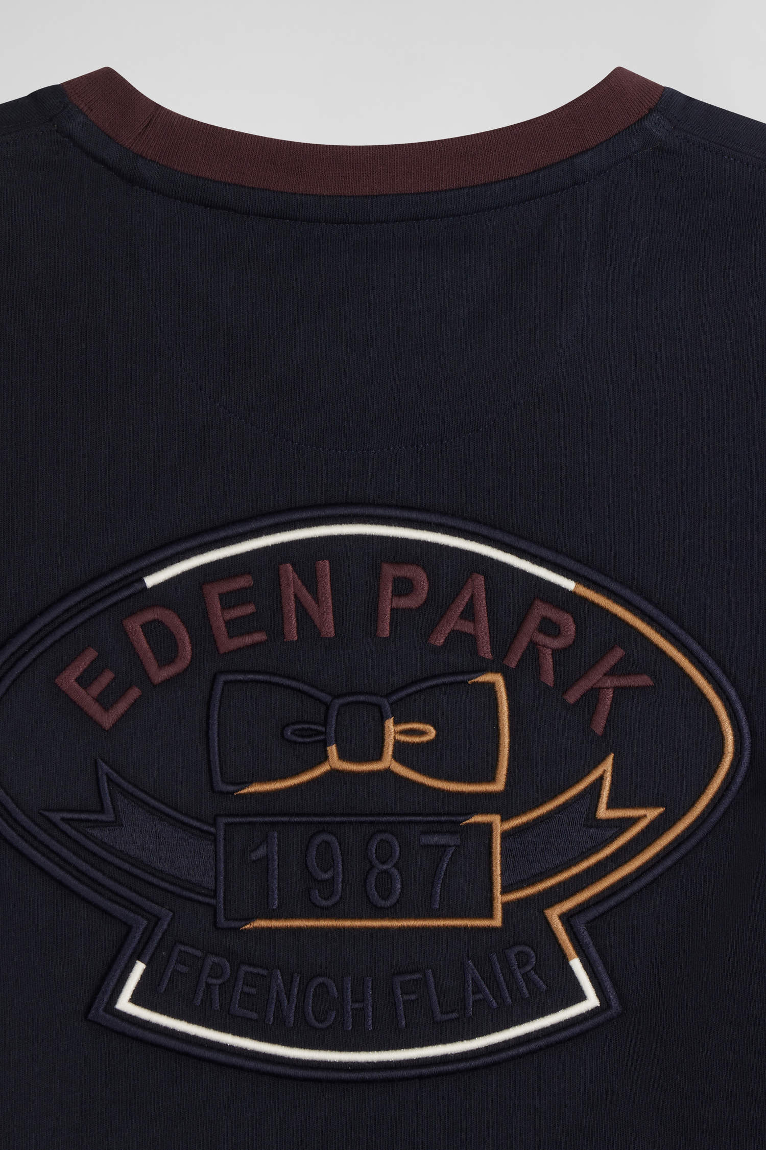 Regular navy short-sleeved cotton T-shirt with back embroidery