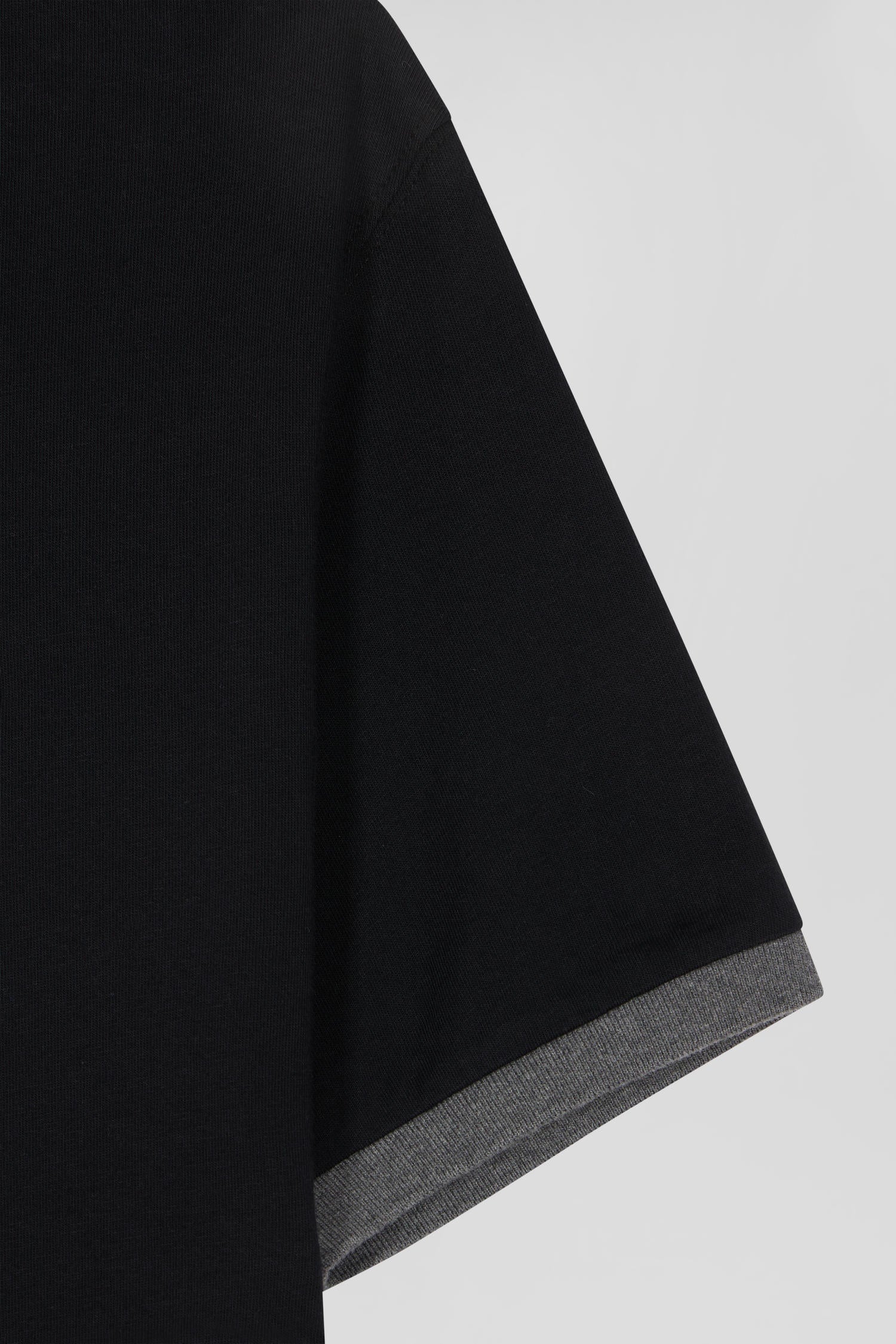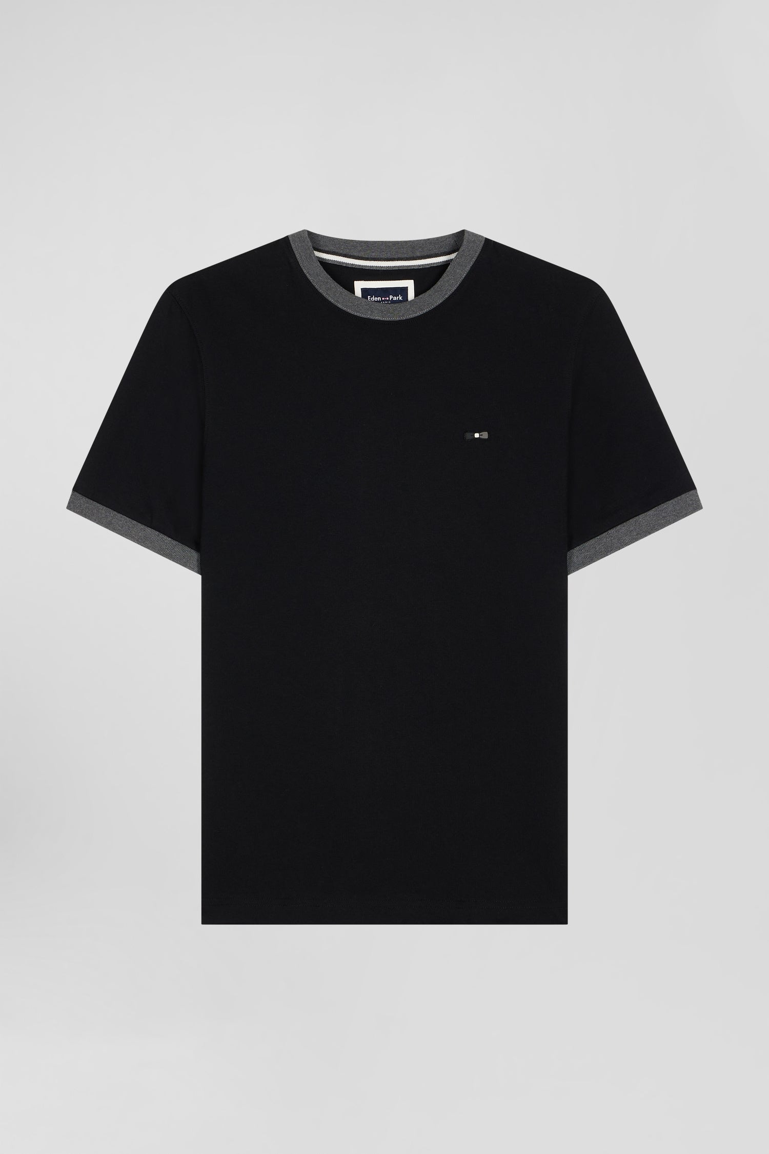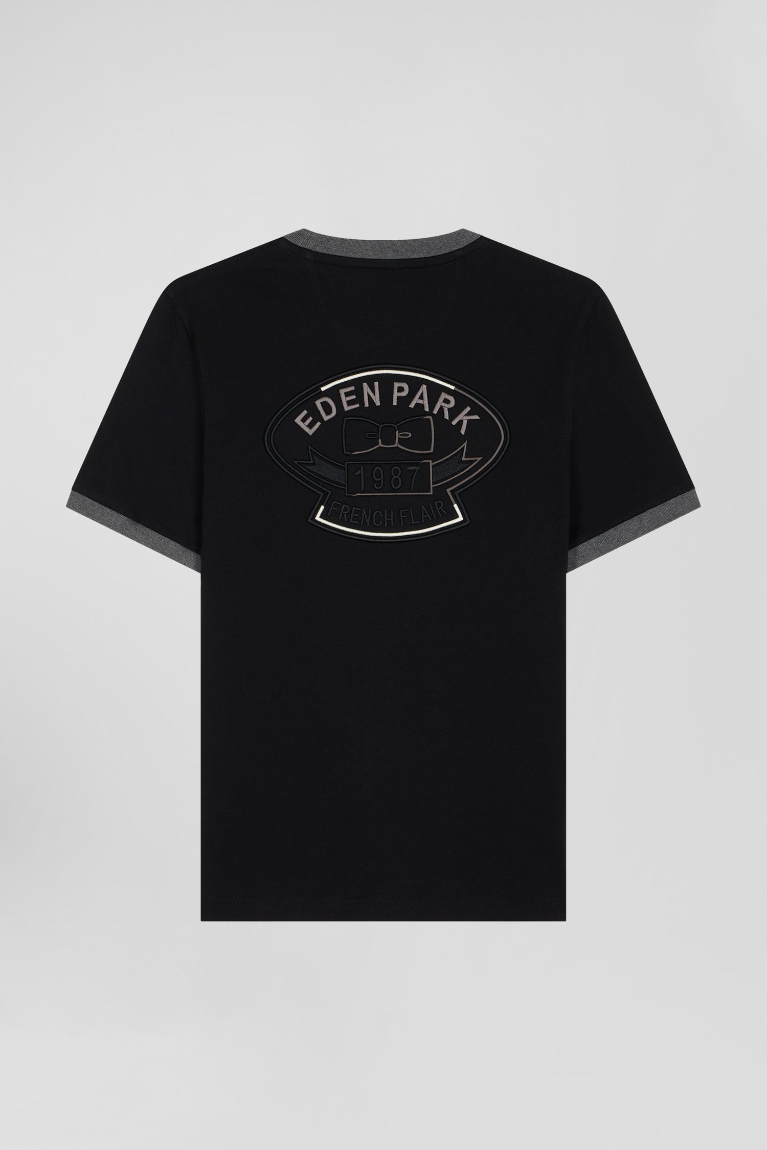 Regular black short-sleeved cotton T-shirt with back embroidery