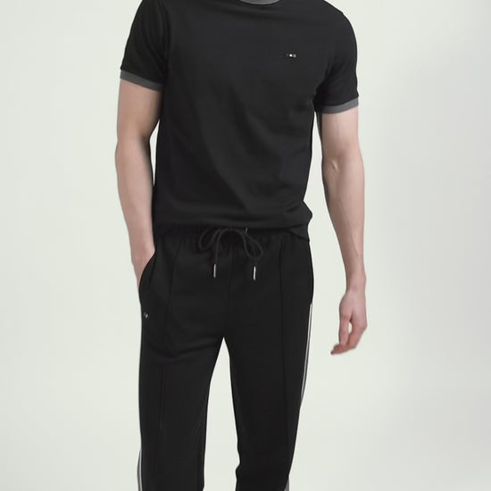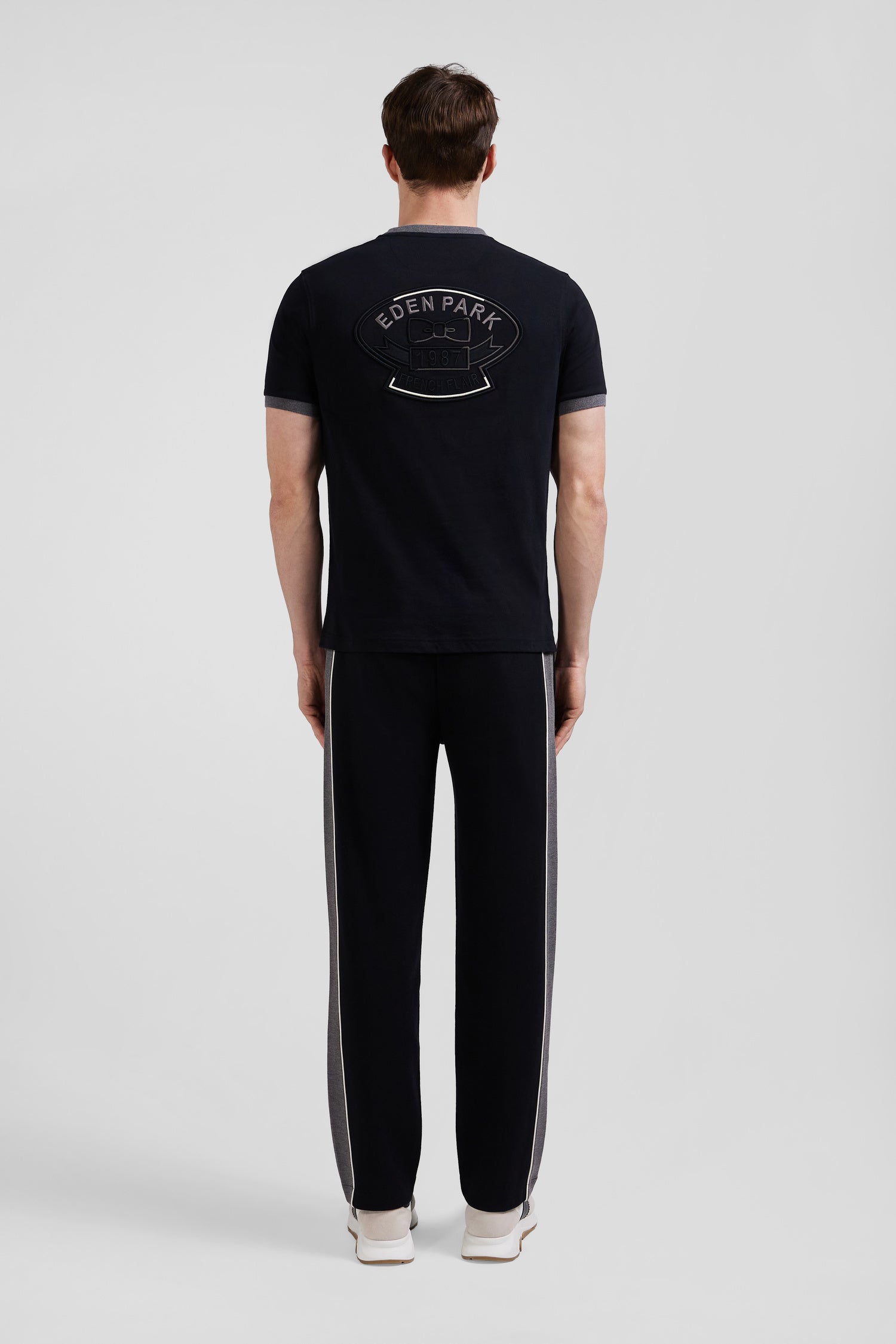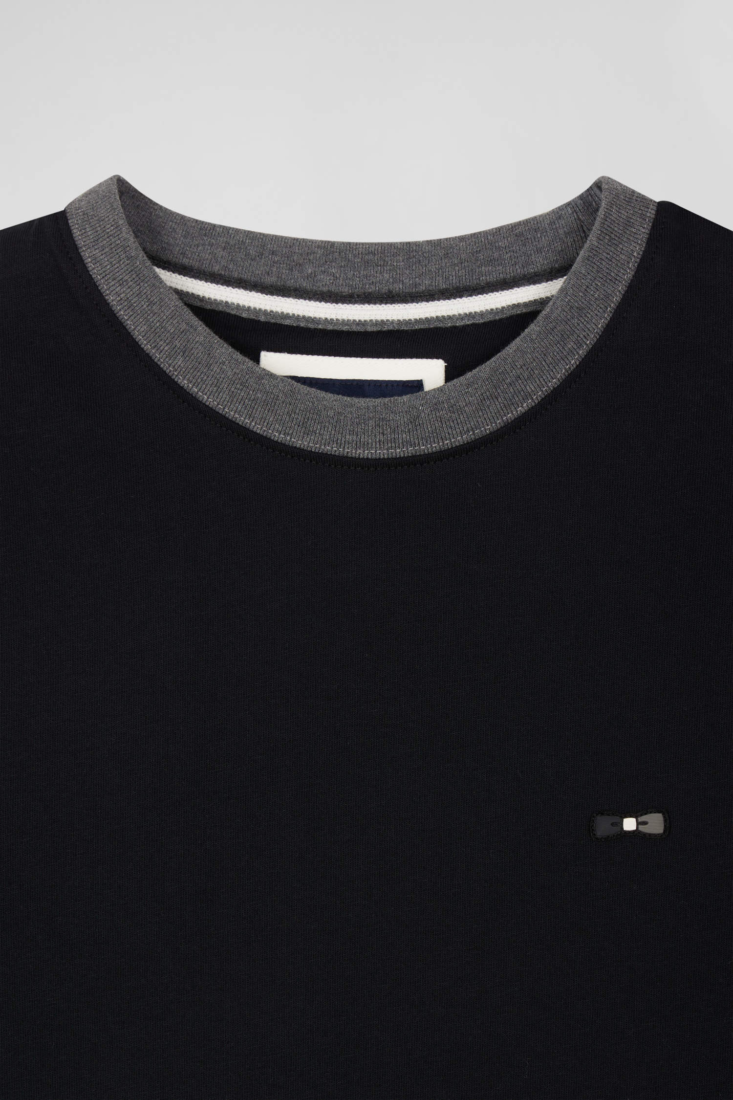 Regular black short-sleeved cotton T-shirt with back embroidery