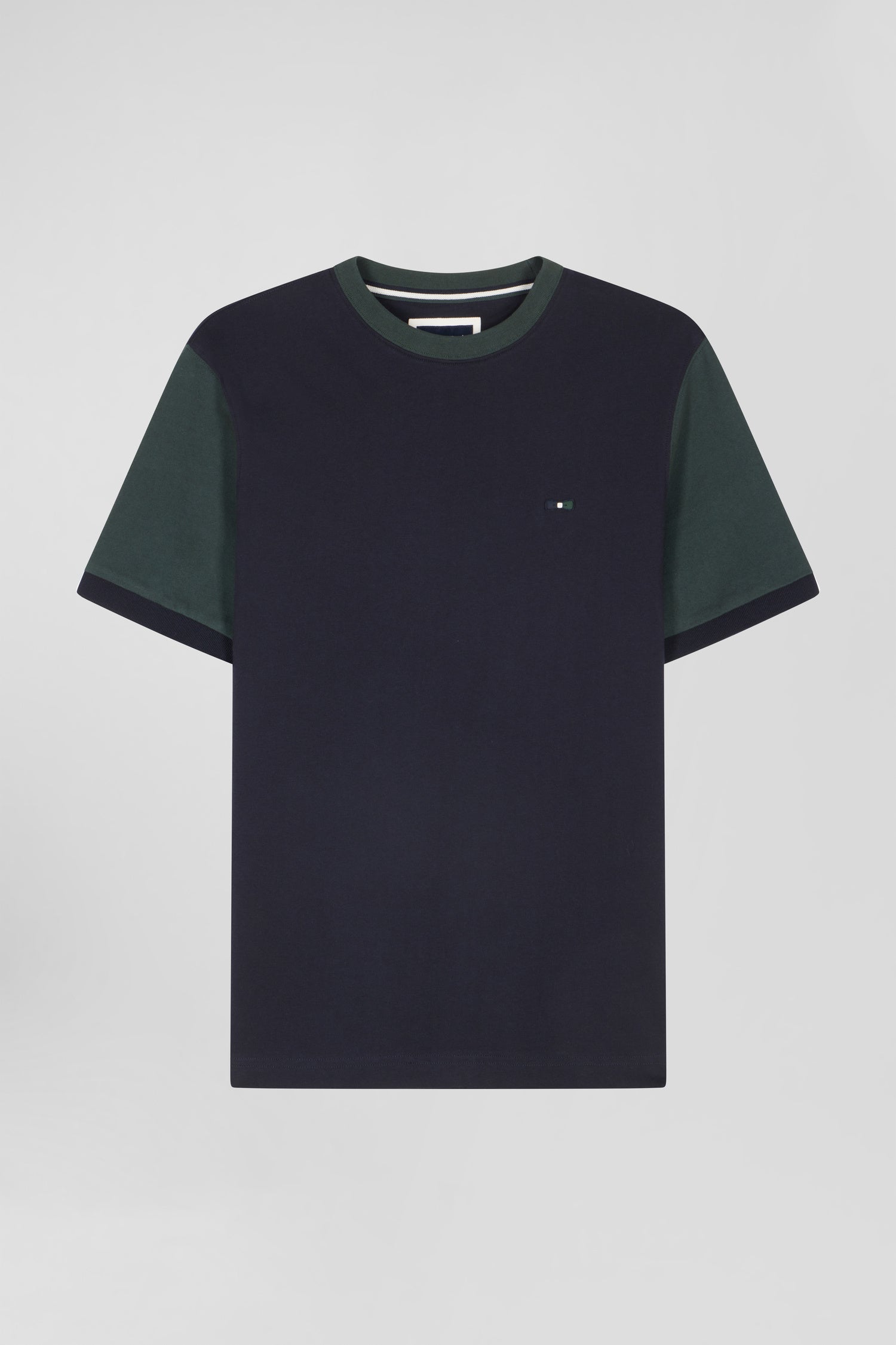 Our top-of-the-range cotton men's T-shirt is embellished with our House's iconic elements assembled in intricate back embroidery. For a graphic touch, this two-tone T-shirt features contrasting sleeves inspired by sportswear.