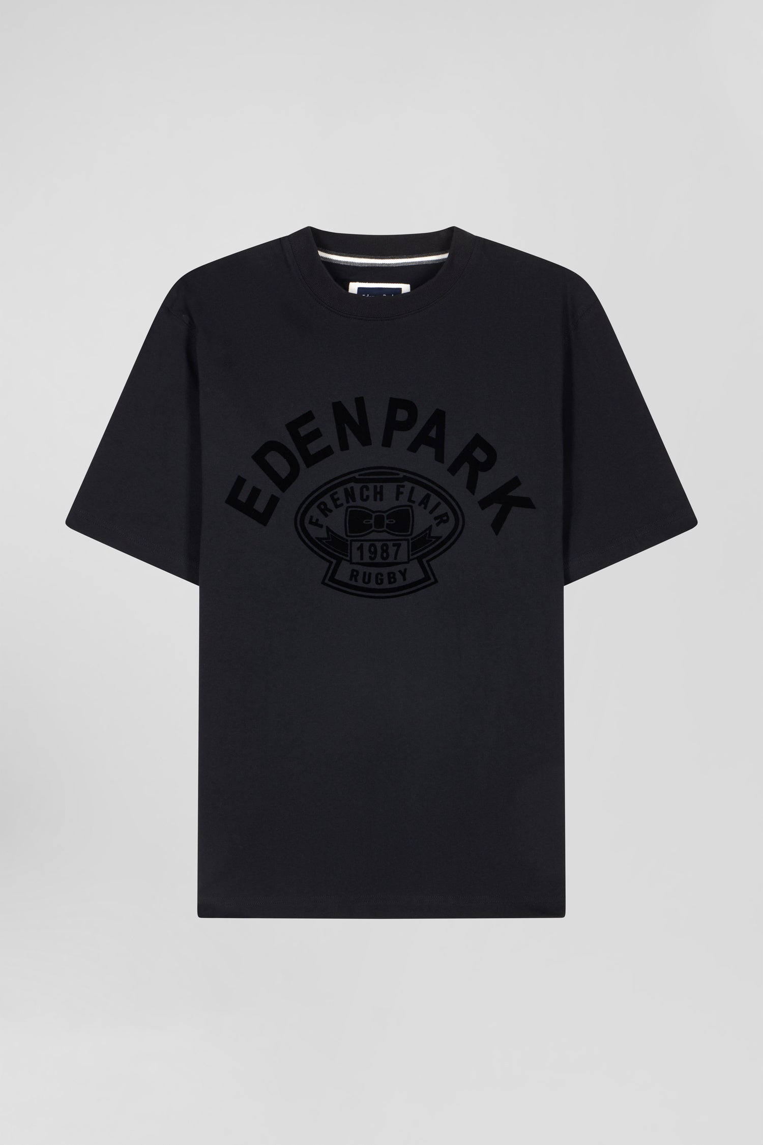 Oversize black short-sleeved cotton T-shirt with Eden Park Rugby print