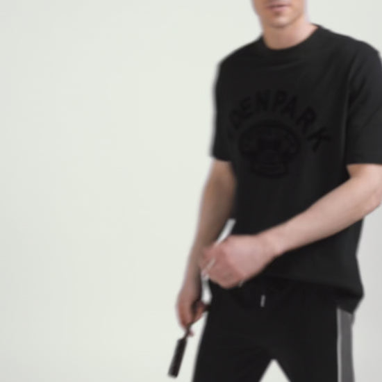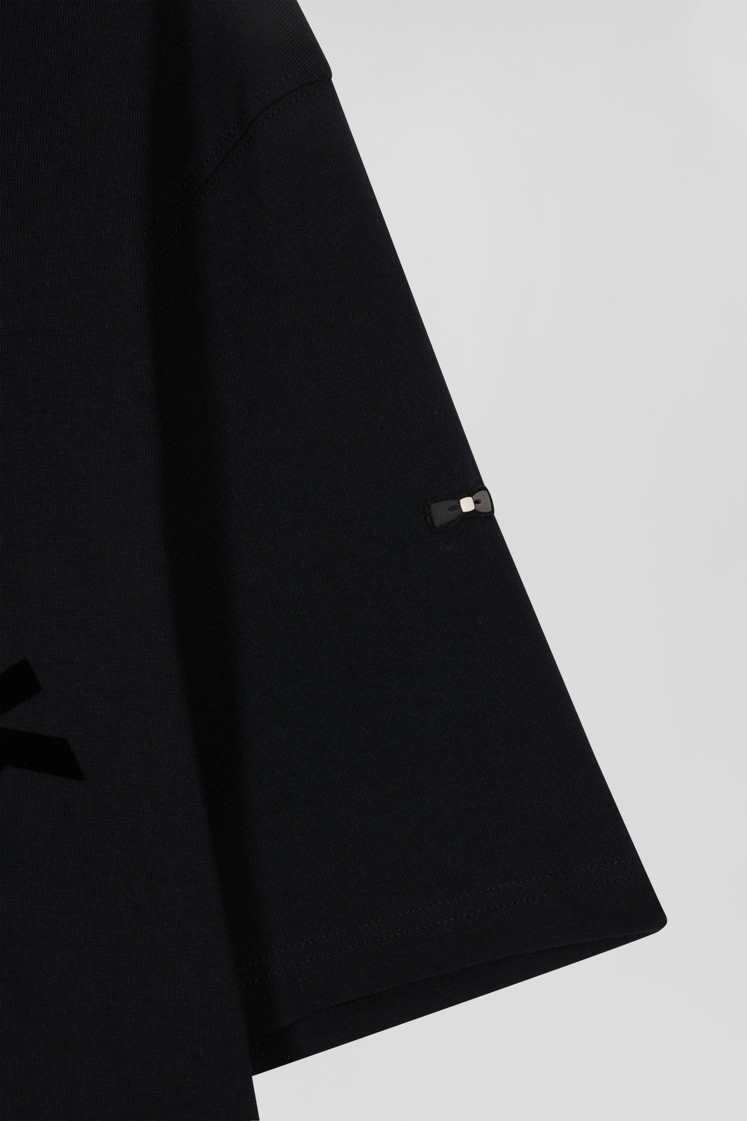 Inspired by varsity, this men's T-shirt features an ecru velvet appliqué on a navy background, or tone-on-tone for the black version. With its oversized cut, this T-shirt promises comfort and style for everyday wear.