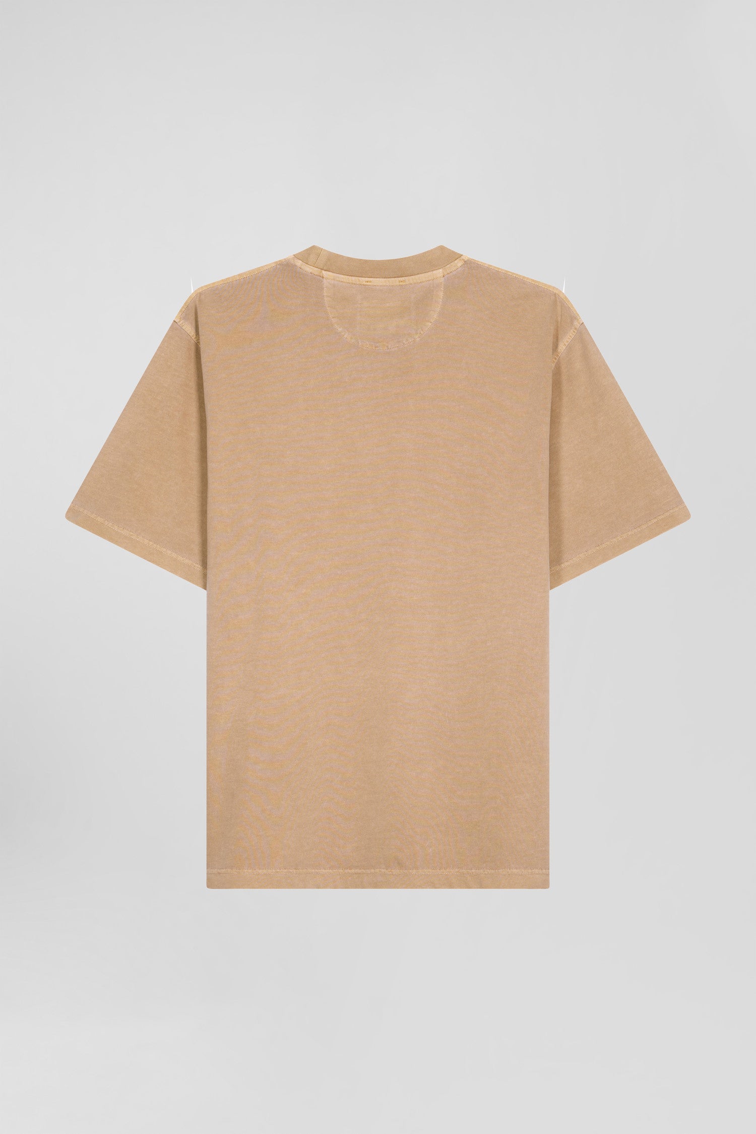 Unisex short-sleeved T-shirt in plain hazelnut overdyed cotton, Oversized cut