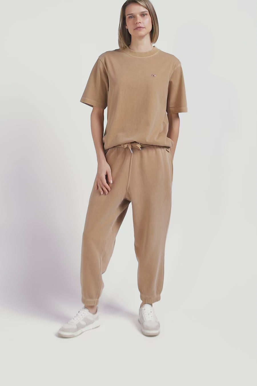 For this range of unisex T-shirts, our House has perfected an overdyed process that gives a slightly vintage effect to the cotton jersey. Available in a pastel colorway, this loose-fitting Oversized cut can be worn in monochrome with matching jogging pants.