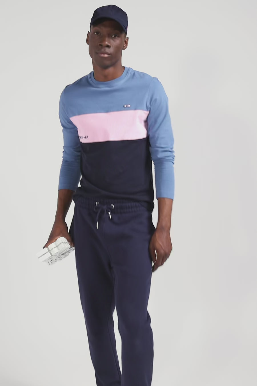 The colorblock, inspired by rugby jerseys, has become a signature of the Eden Park wardrobe. For autumn/winter, our House tastefully combines its iconic colors on a comfortable long-sleeved cotton jersey T-shirt.