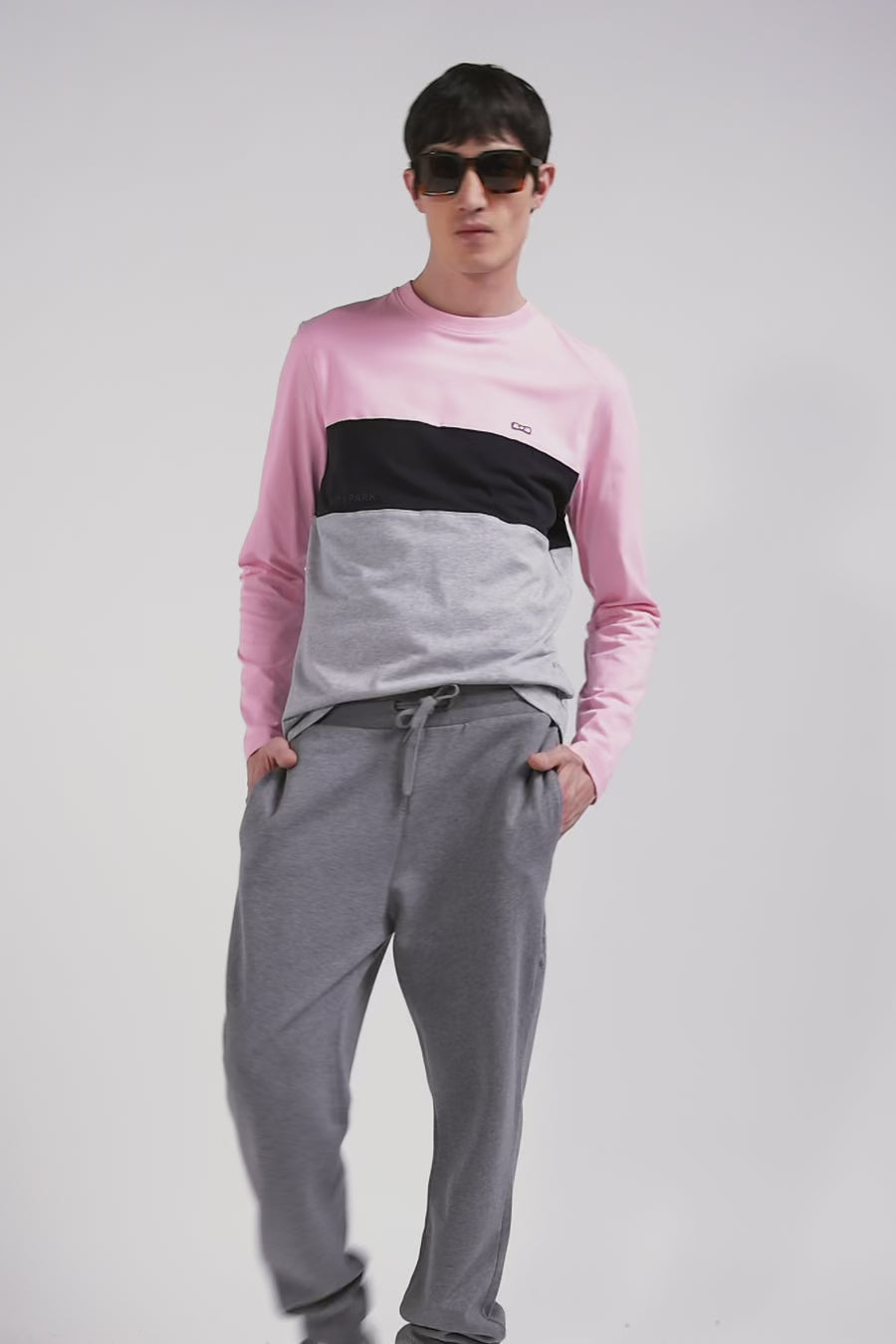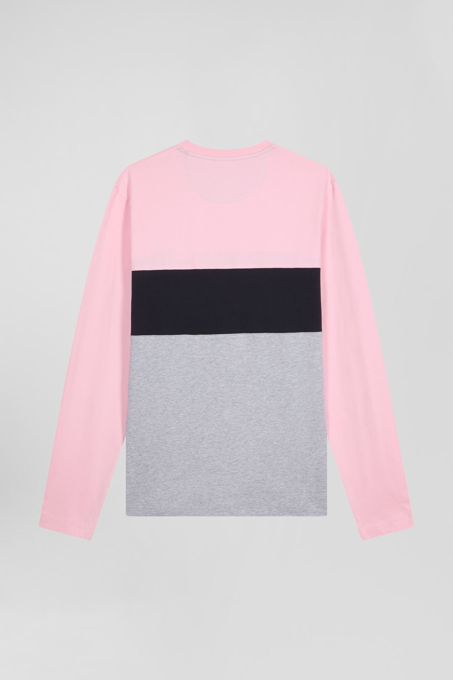 Regular pink colorblock long-sleeved cotton T-shirt