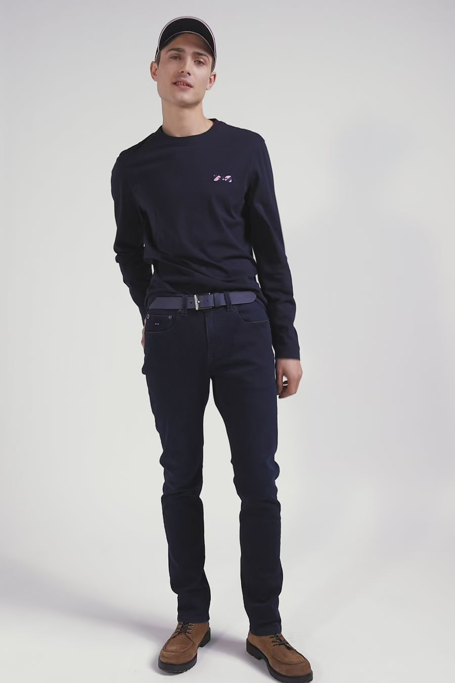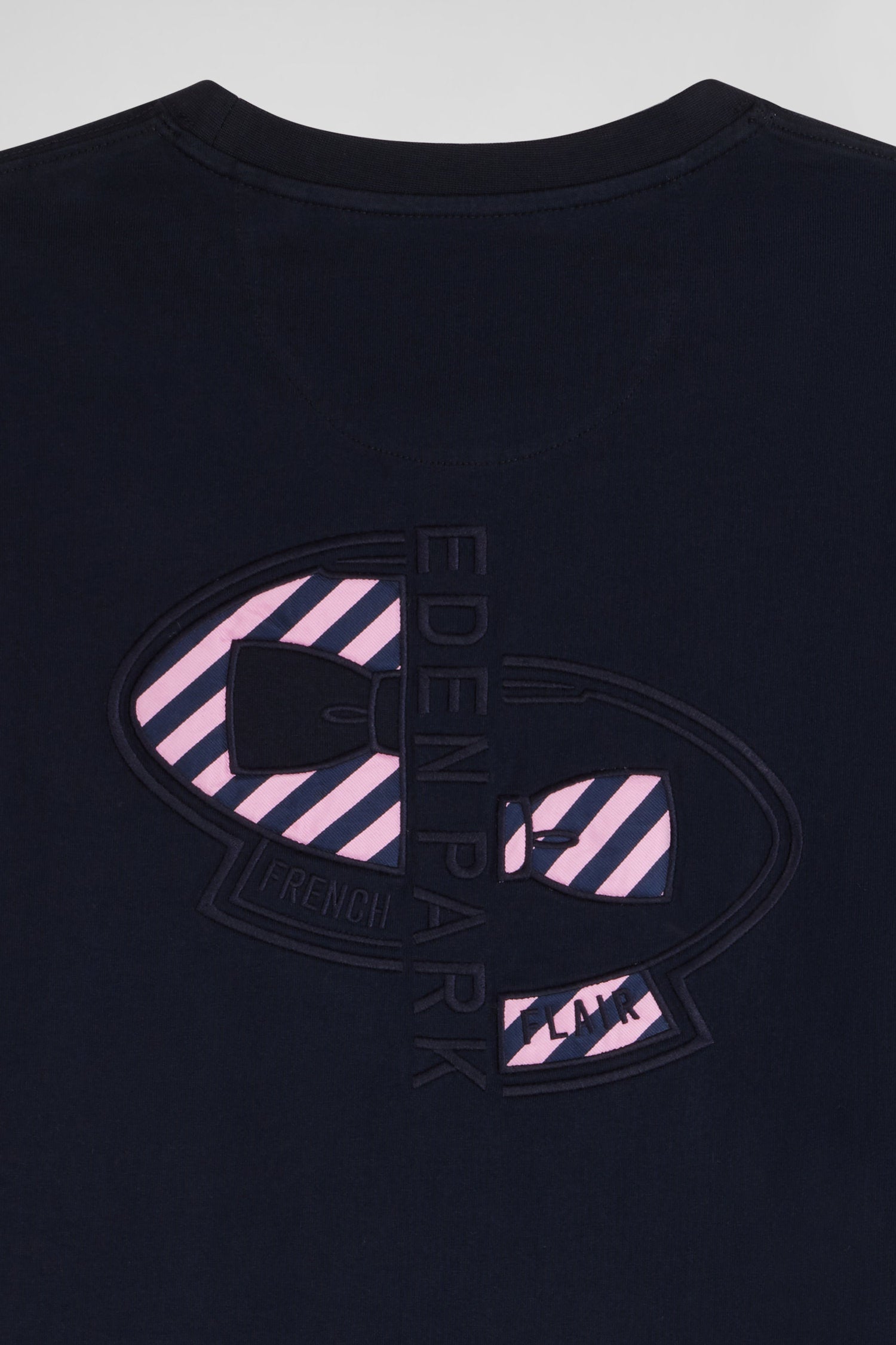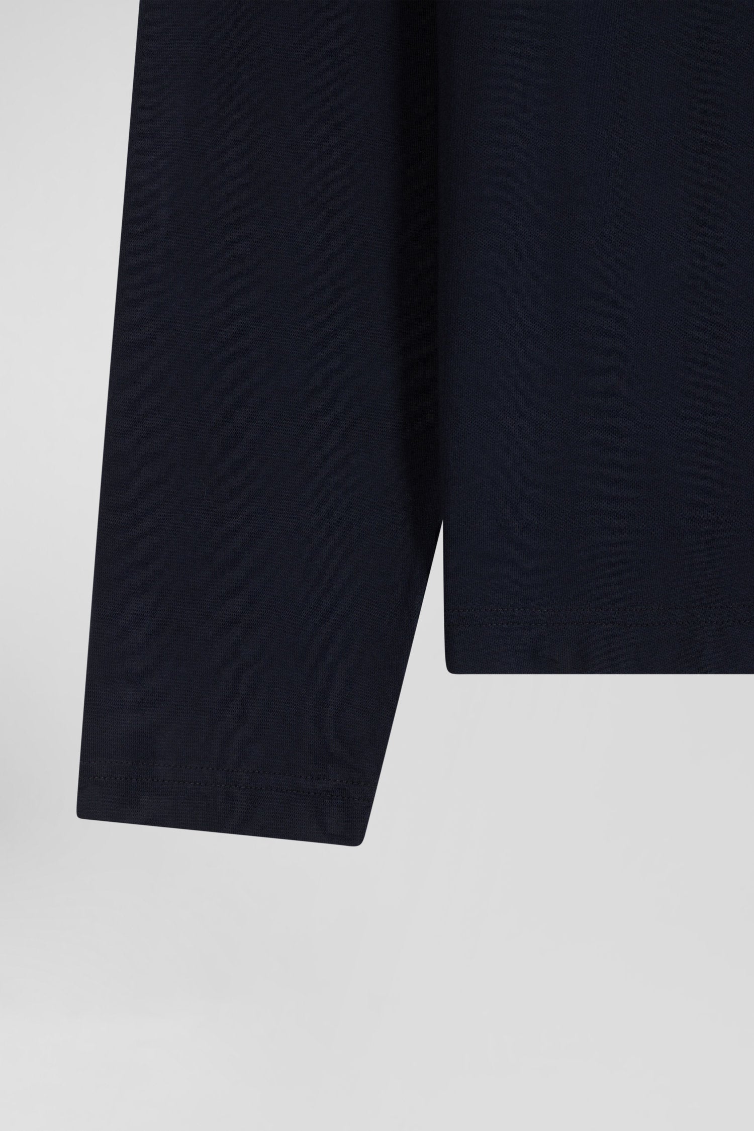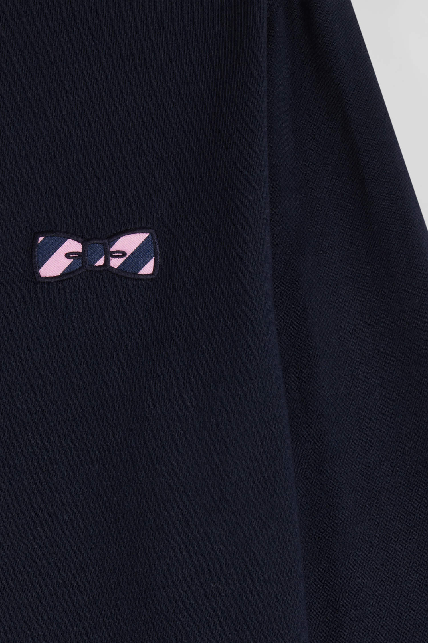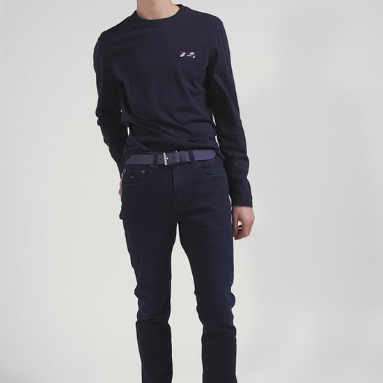 Regular navy blue embroidered long-sleeved cotton T-shirt