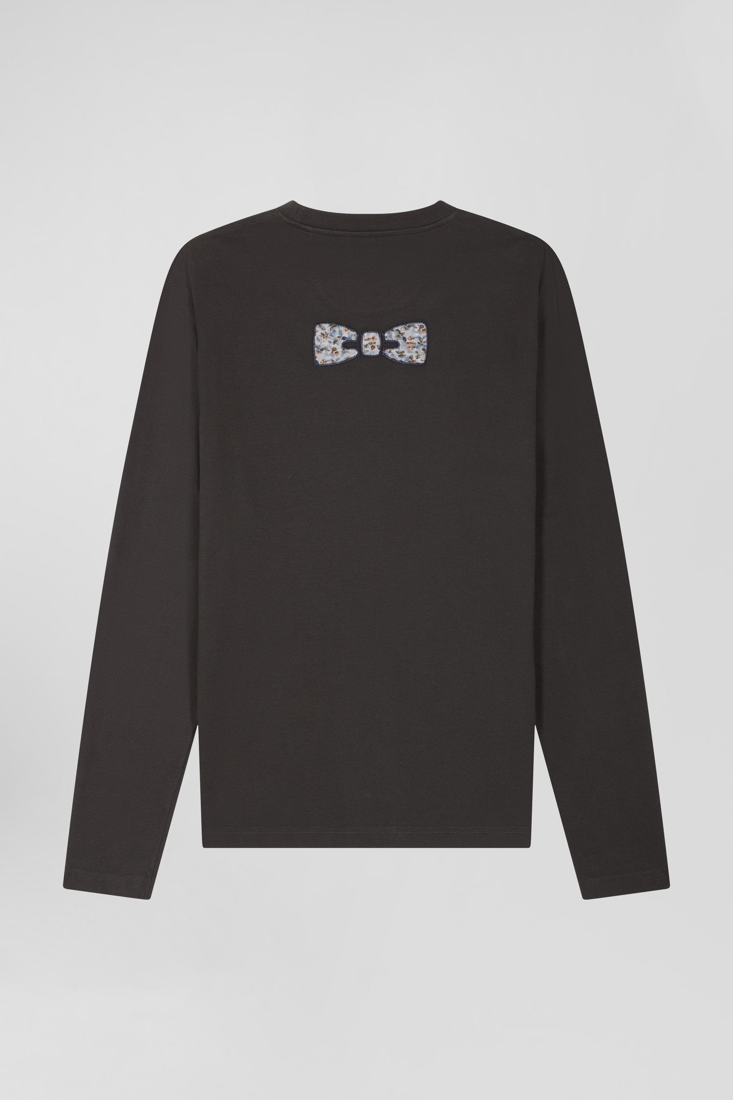 Regular khaki long-sleeved cotton T-shirt with floral back patch