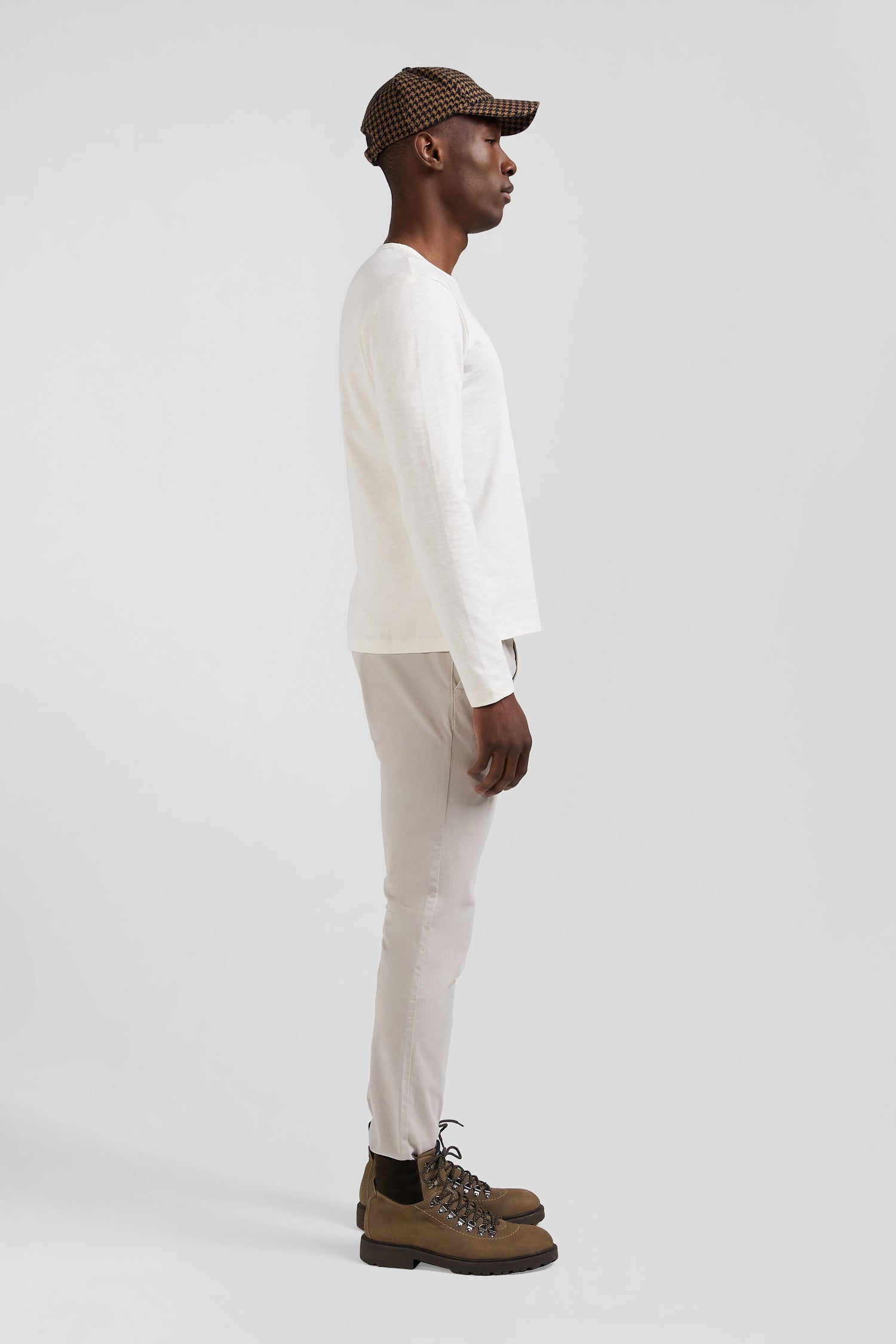 Slim ecru long-sleeved cotton T-shirt