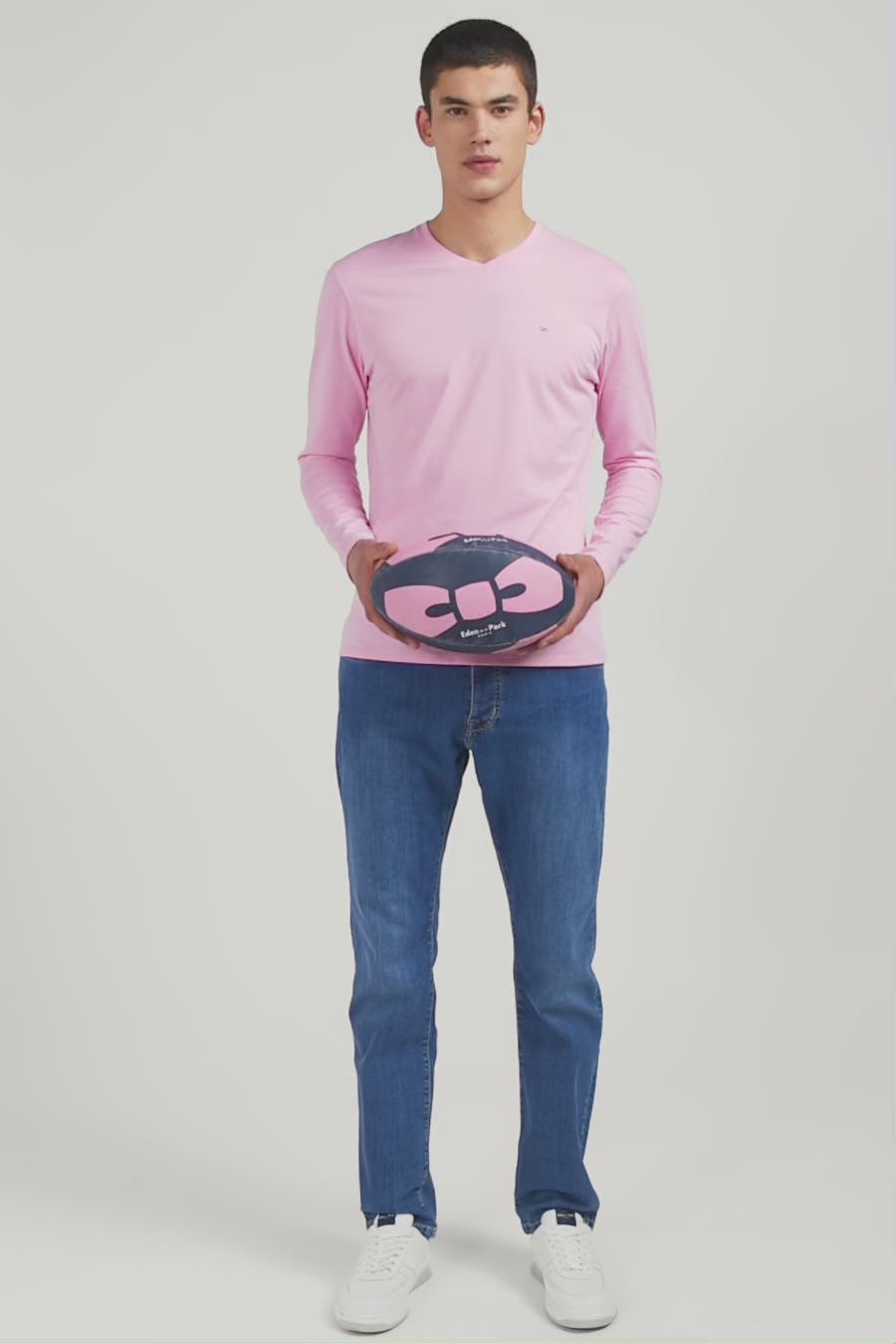 Long sleeved pink V neck t-shirt