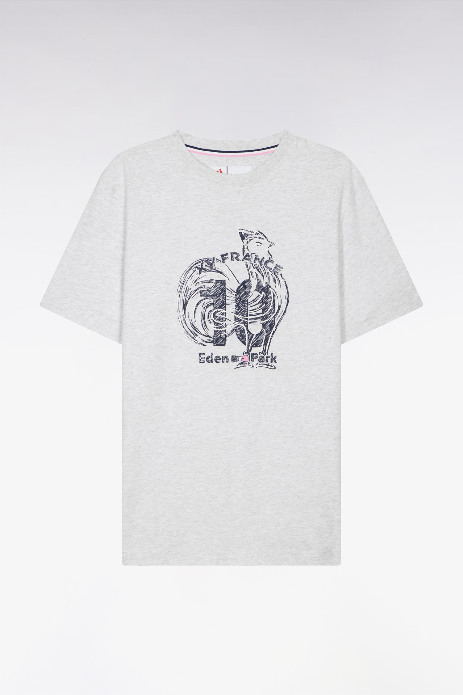 Notre T-shirt en jersey de coton gris adopte une coupe droite confortable et dévoile une sérigraphie graphique centrée sur le coq, symbole fort du rugby français. Associée à la signature Eden Park, elle compose un visuel identitaire, pensé pour prolonger l’esprit du rugby jusque dans votre quotidien.