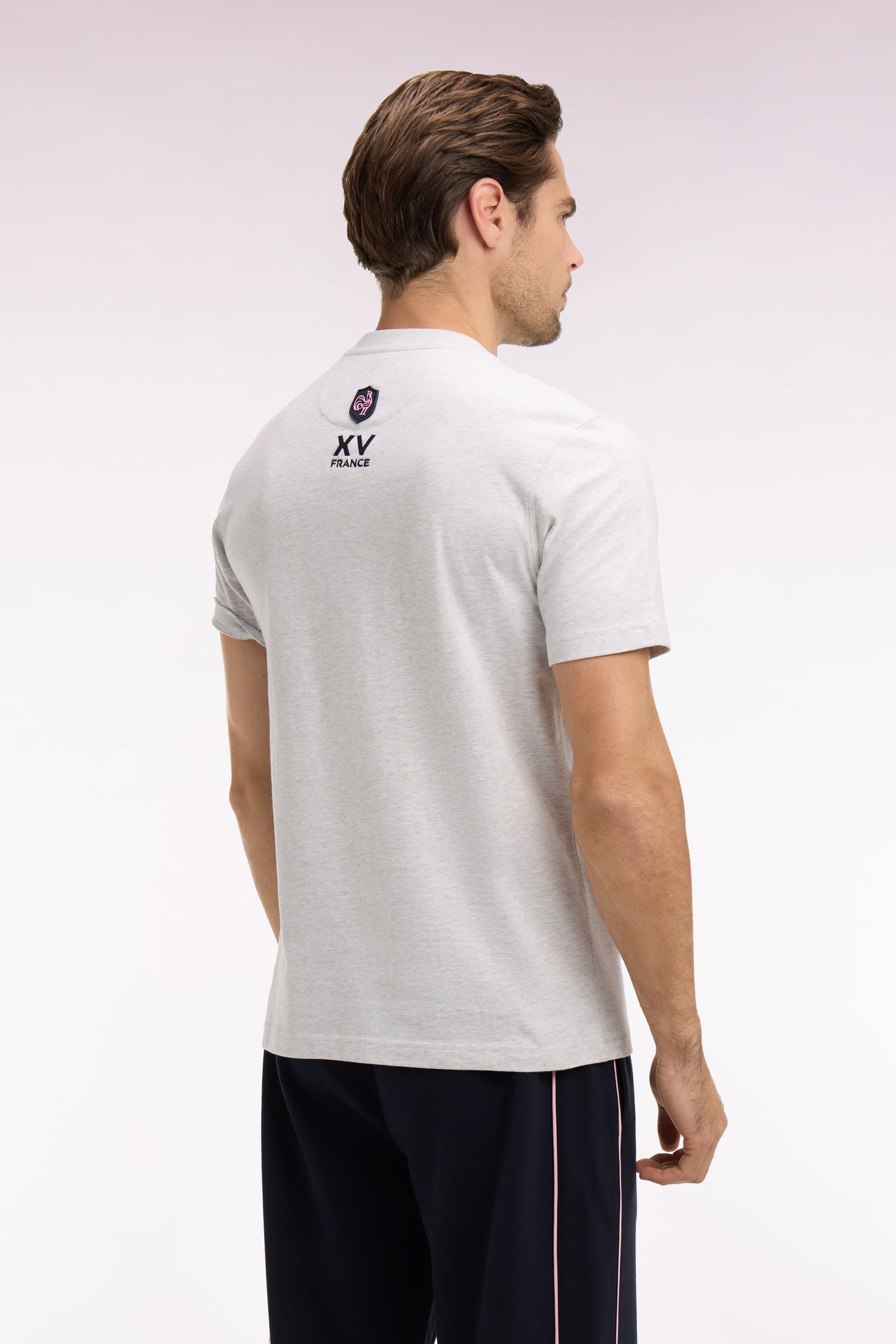 T-shirt XV de France à manches courtes sérigraphié en coton gris coupe regular